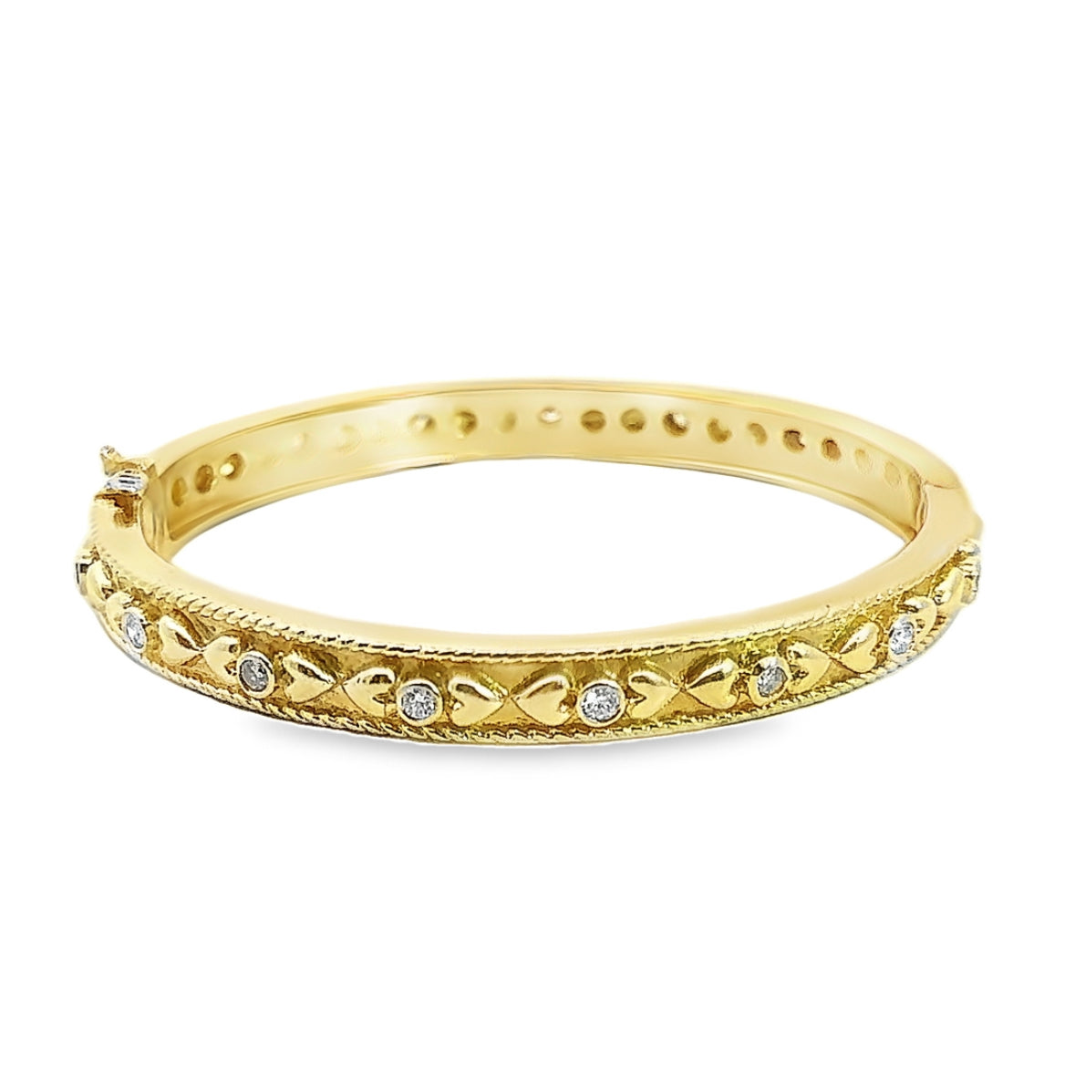 18K Yellow Gold Hearts & Diamonds Bangle