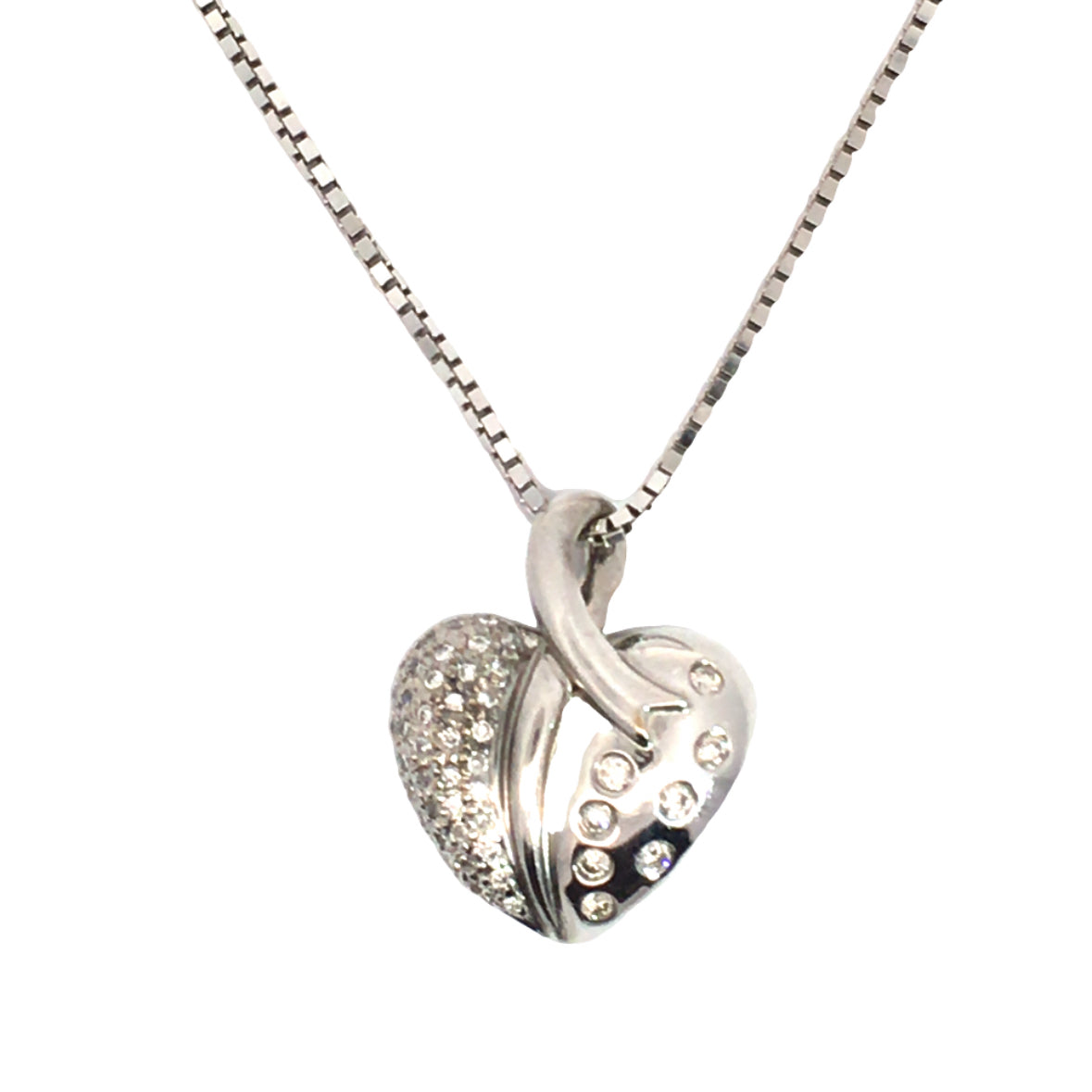 A unique 18K white gold heart pendant, crafted to captivate hearts and illuminate any look. This beautiful piece showcases a heart-shaped silhouette, excluding elegance and love.