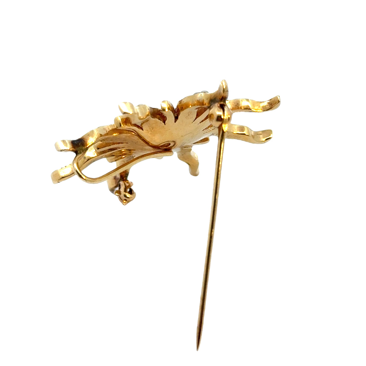 This brooch/pendant is a stunning example of 1920s craftsmanship, showcasing timeless elegance with its combination of delicate seed pearls, warm gold tones, and a sophisticated design. It is a perfect accessory for vintage jewelry collectors and those looking to add a touch of classic glamour to their attire.