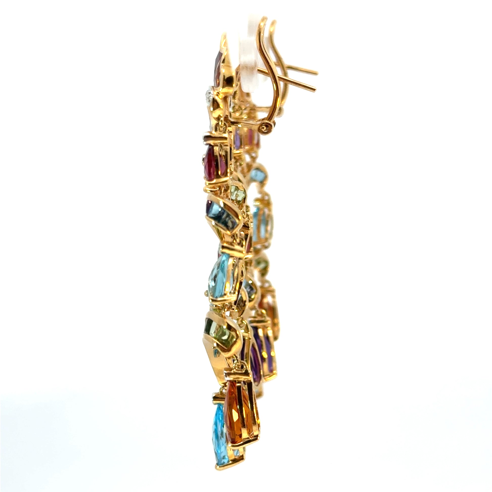 18K Yellow Gold Multicolor Tourmaline & Diamond French-Clip Chandelier Earrings