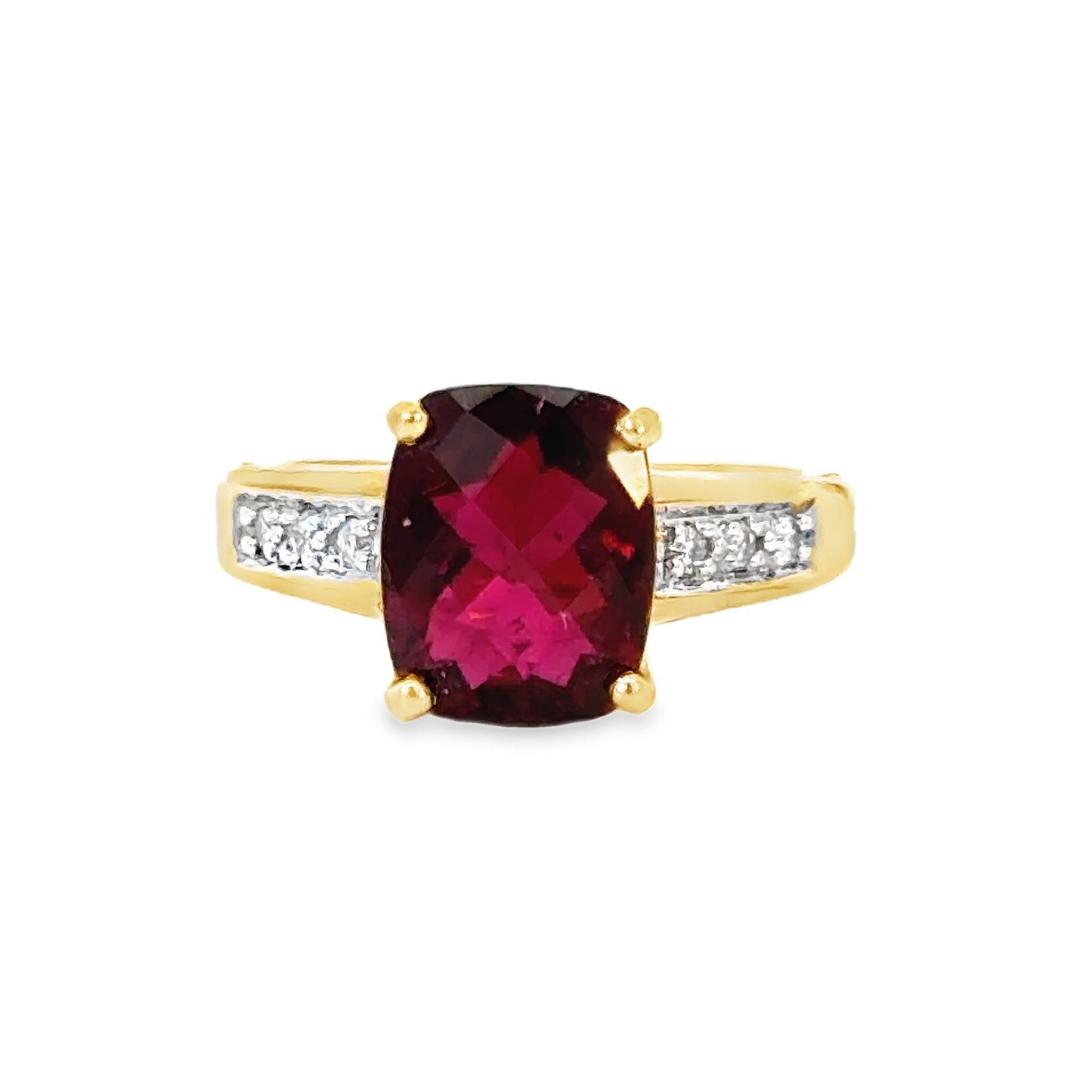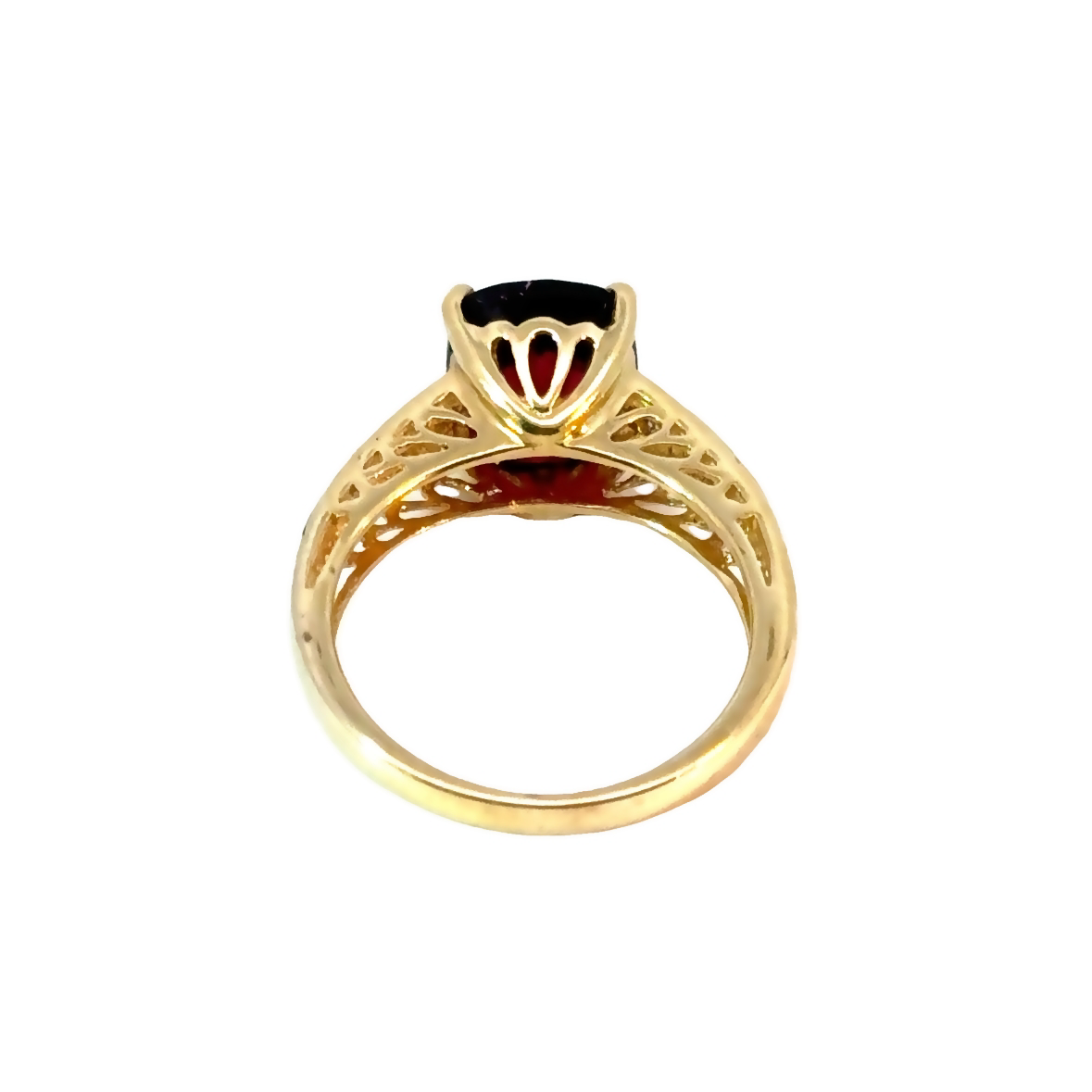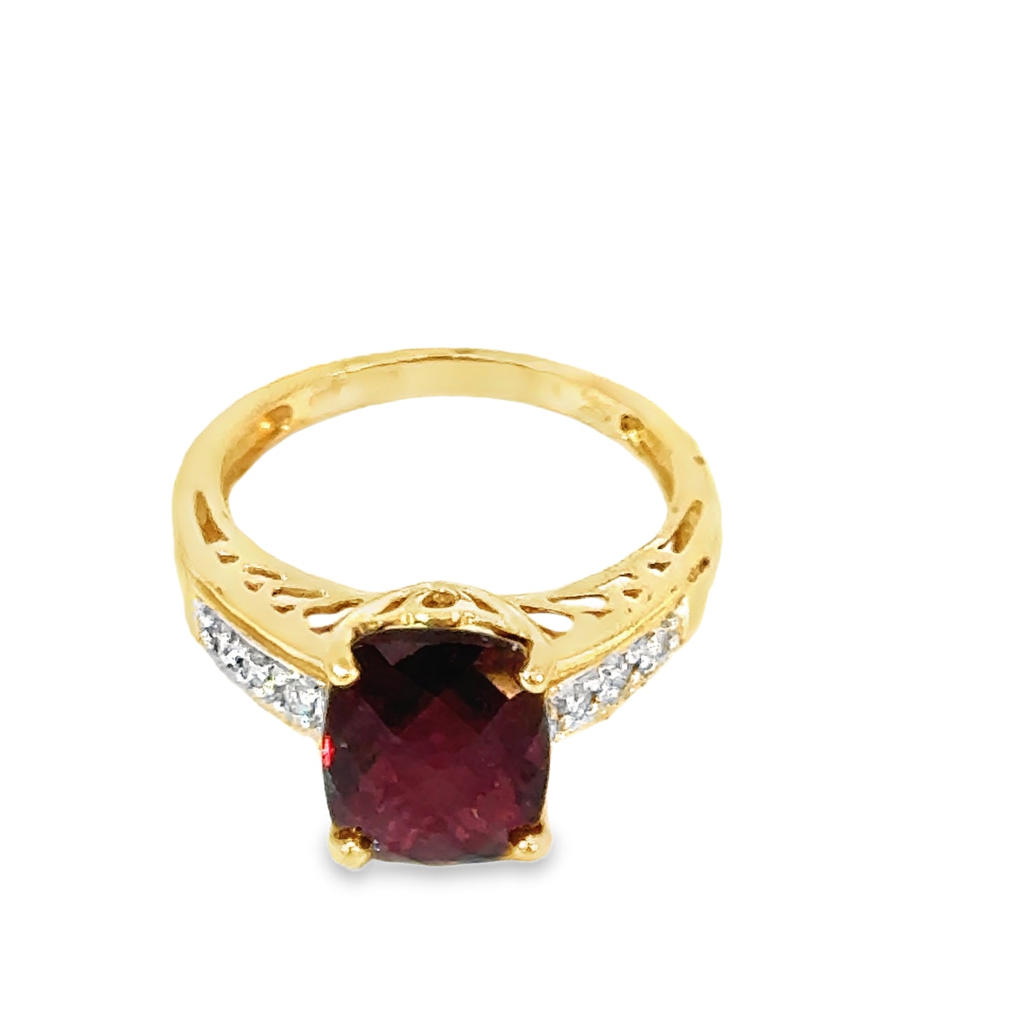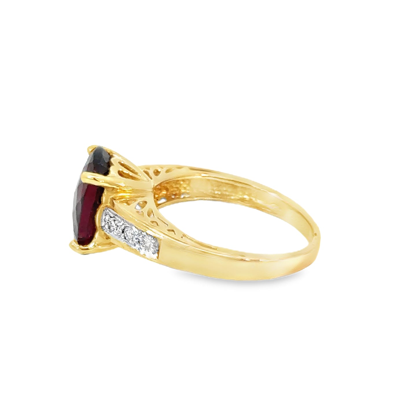 14K Yellow Gold, Garnet Center Stone 10x8mm, Diamonds Approx.0.12ct., Size 6 |