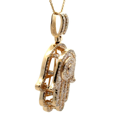 14K Yellow Gold, Hamsa Pendant, SI/G Diamonds Approx.4.0ct., Length Approx.2..0”Width Approx.1.1” *Chain not included |