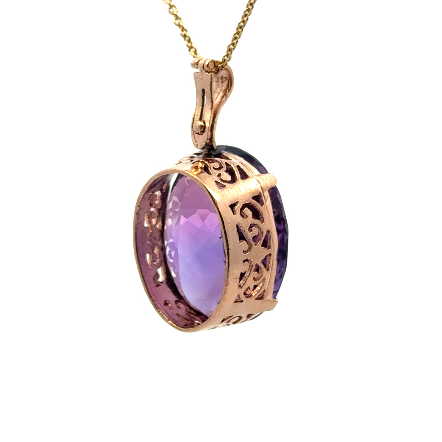 Antique 14K Filigree Rose Gold & Amethyst Pendant