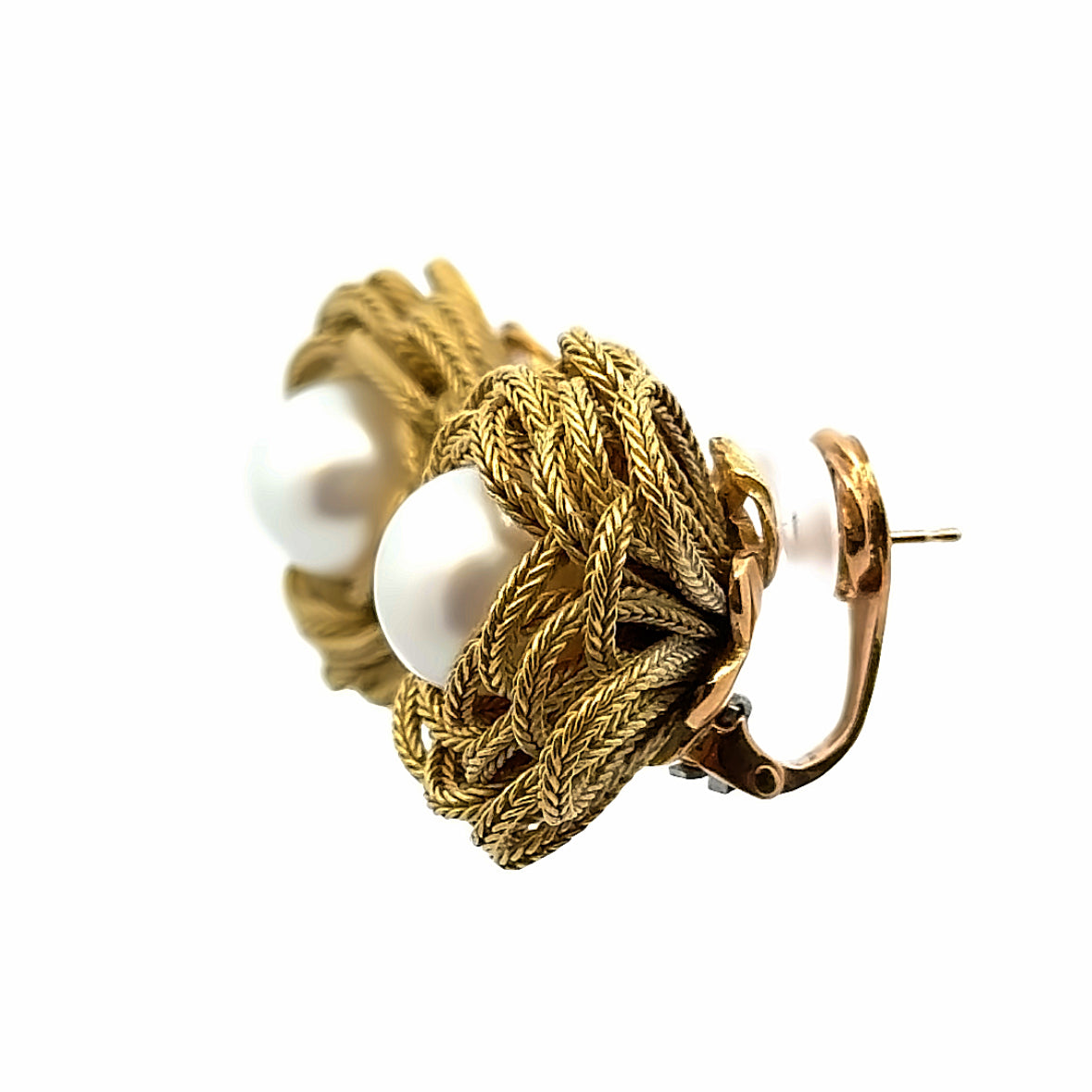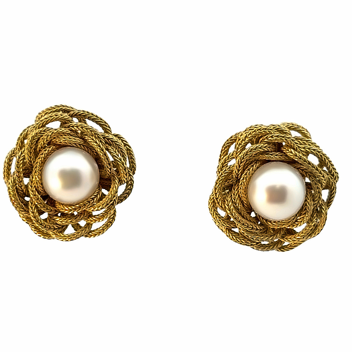 | 18K Pleated Yellow Gold, Pearl Approx.10mm., Riker Bros., French-Clip Earrings |