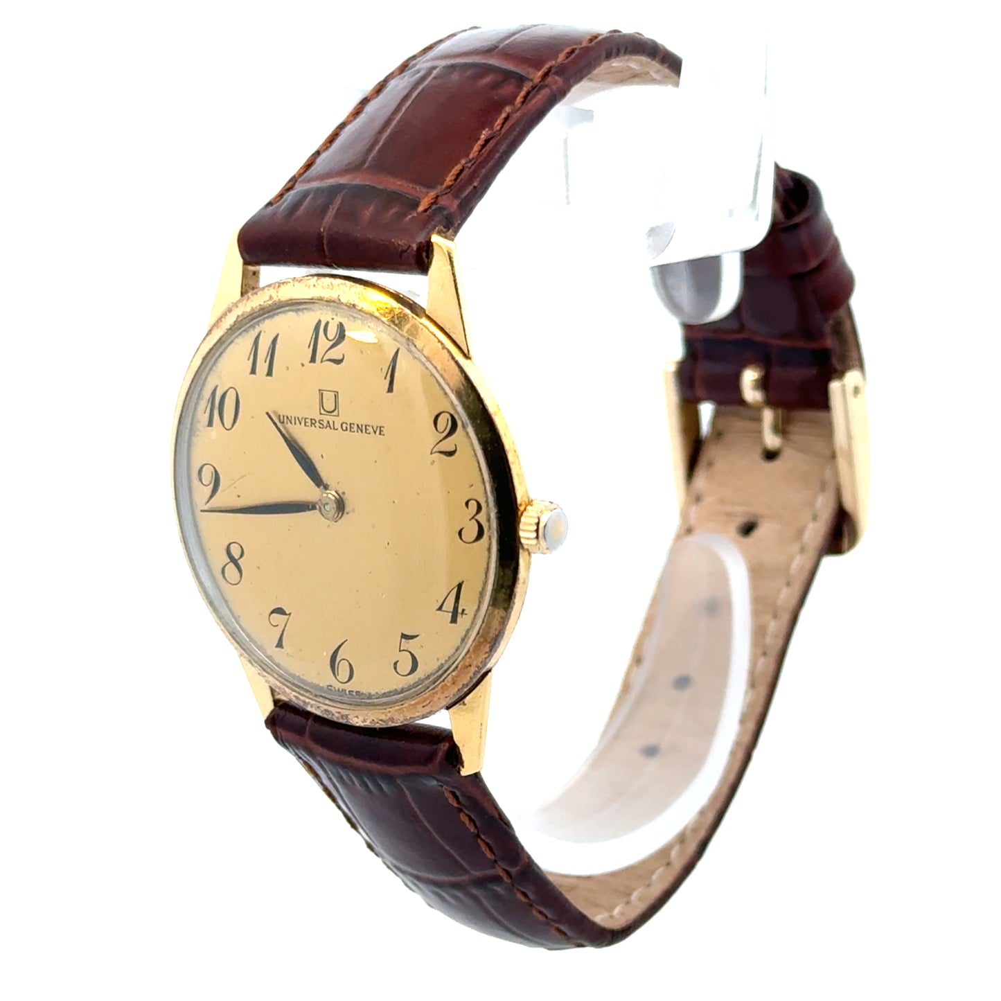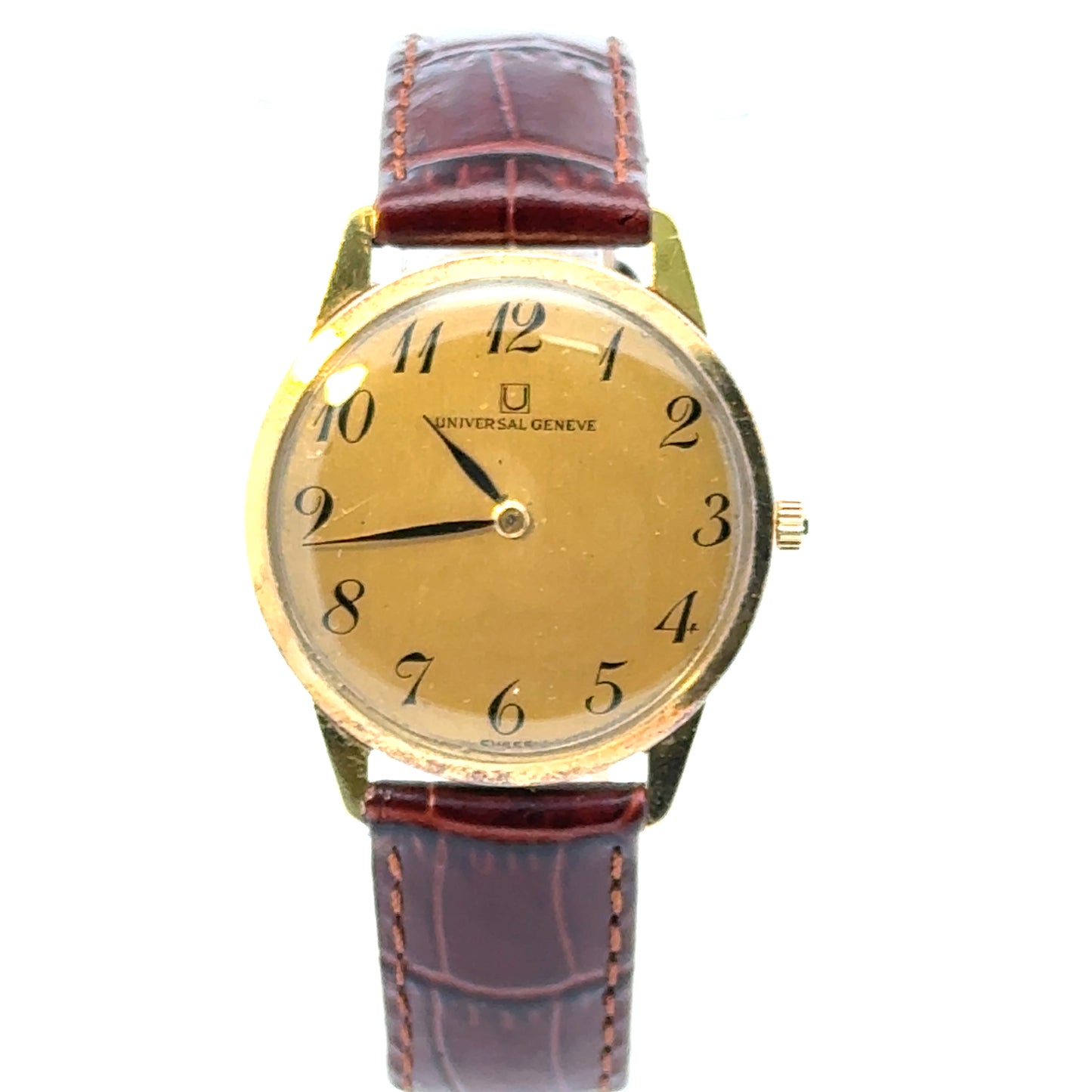| Universal Geneve, 18K Yellow Gold, Ultra Thin 31mm Case, Brown Genuine Leather Alligator Strap, Winding Movement |