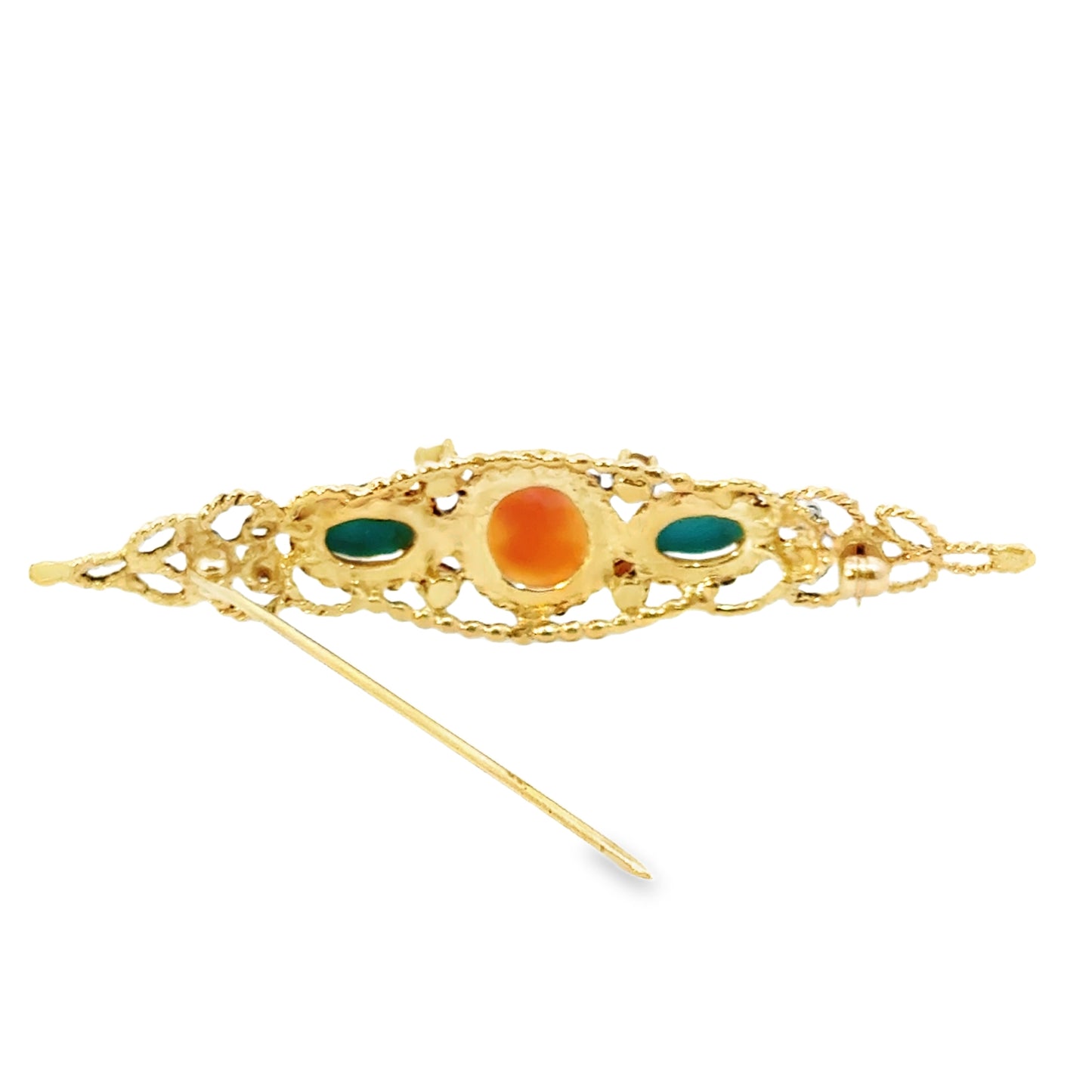 14K Yellow Gold Turquoise & Garnet Cameo Brooch