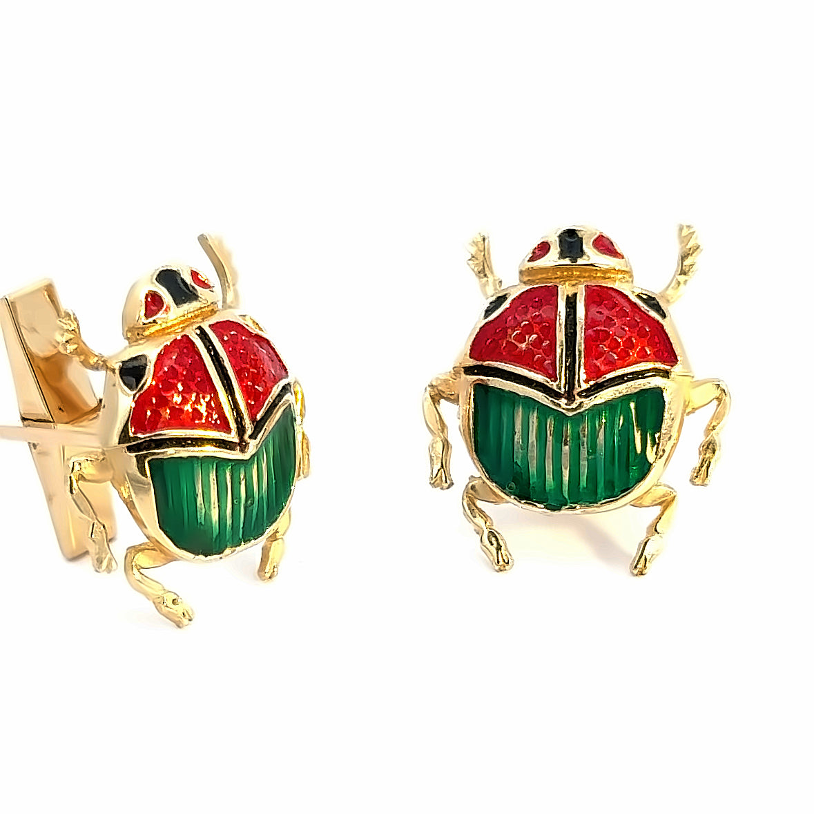 14K Yellow Gold Beetle Enamel Cuff Links