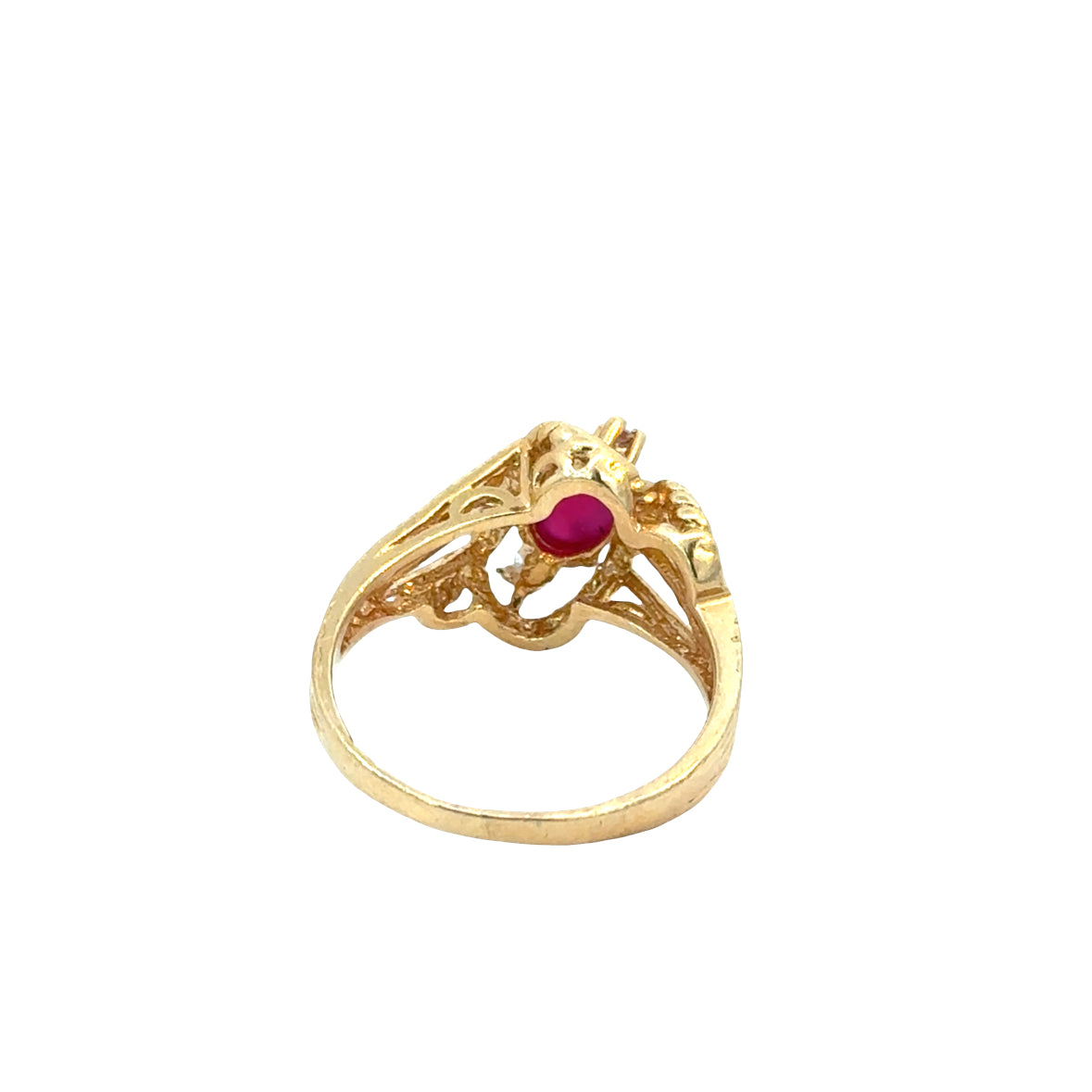 14K Yellow Gold Pink Star Ruby & Diamond Ring