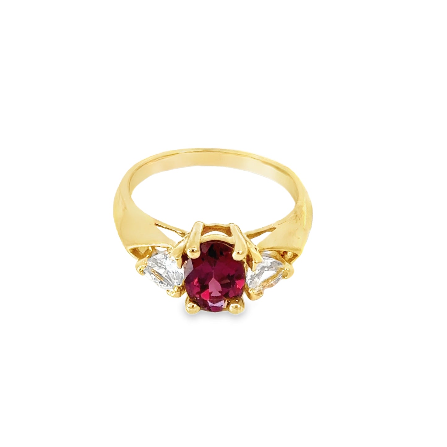 14K Yellow Gold, Pink Tourmaline Center Stone, White Sapphires, Size 5 3/4 |