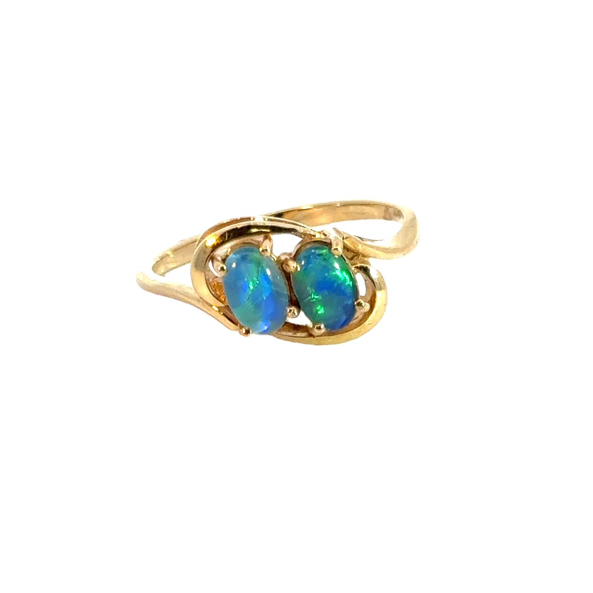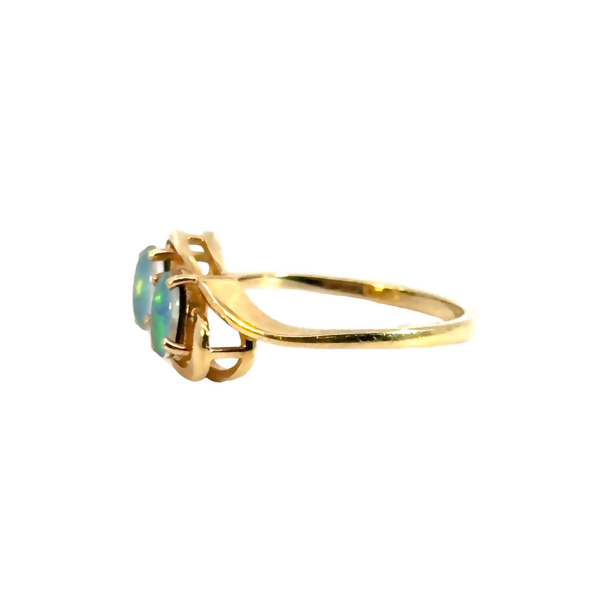 Swirling 14K Yellow Gold Blue-Green Opal Ring