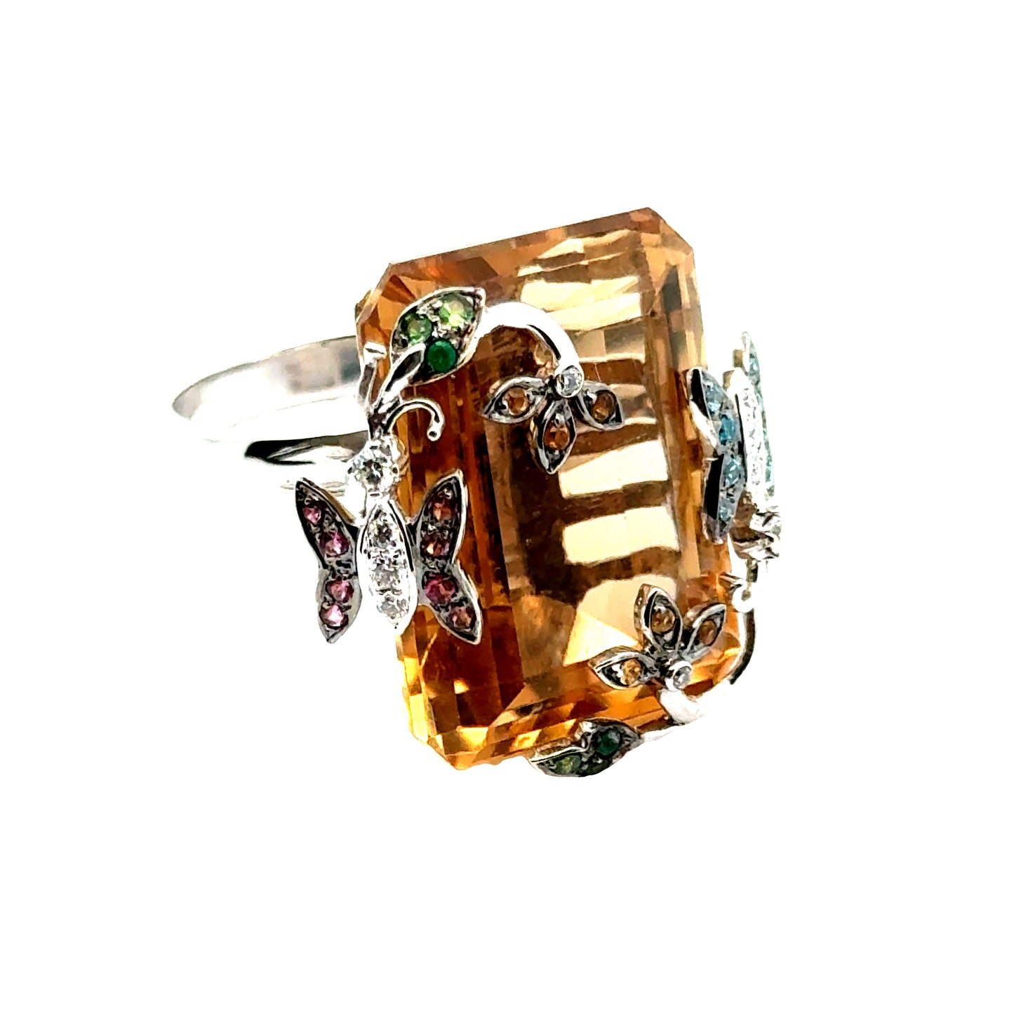 18K Flower and Butterfly Large Sapphire Cocktail Ring