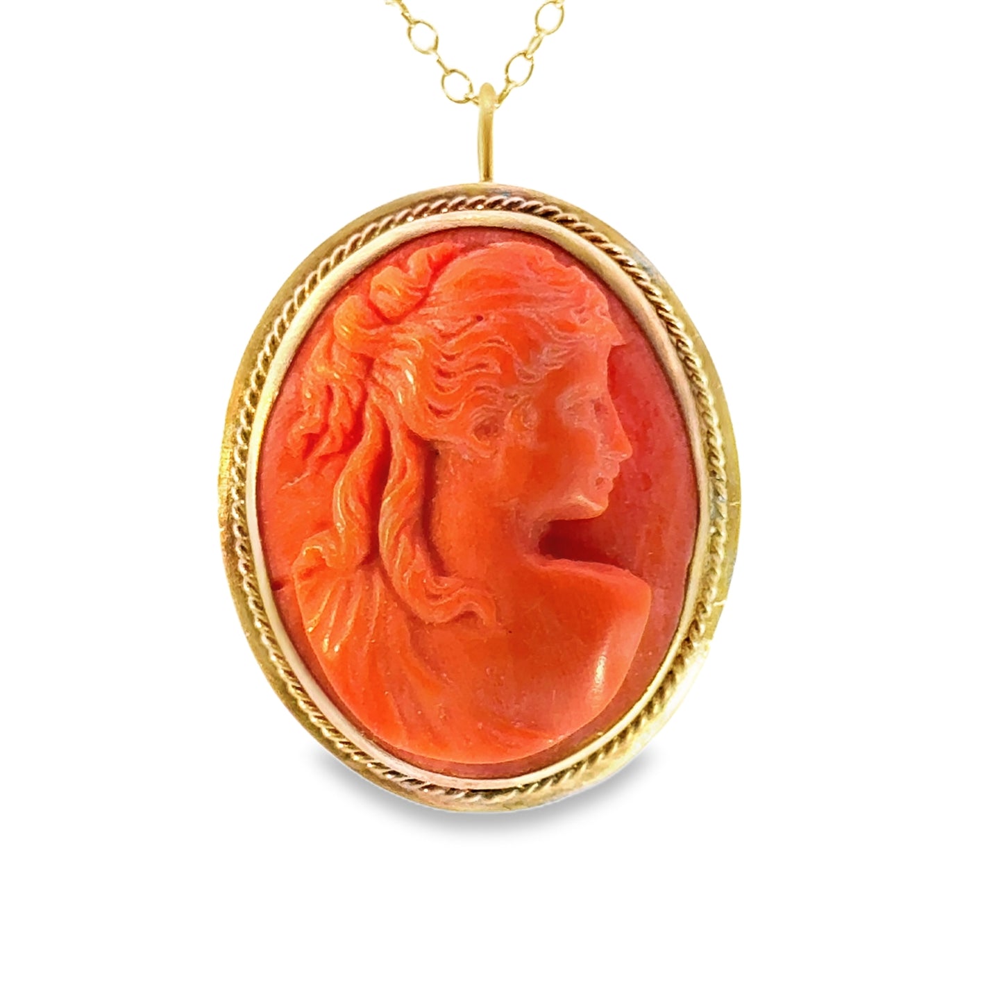 14K Yellow Gold 1920’s Coral Cameo Pendant