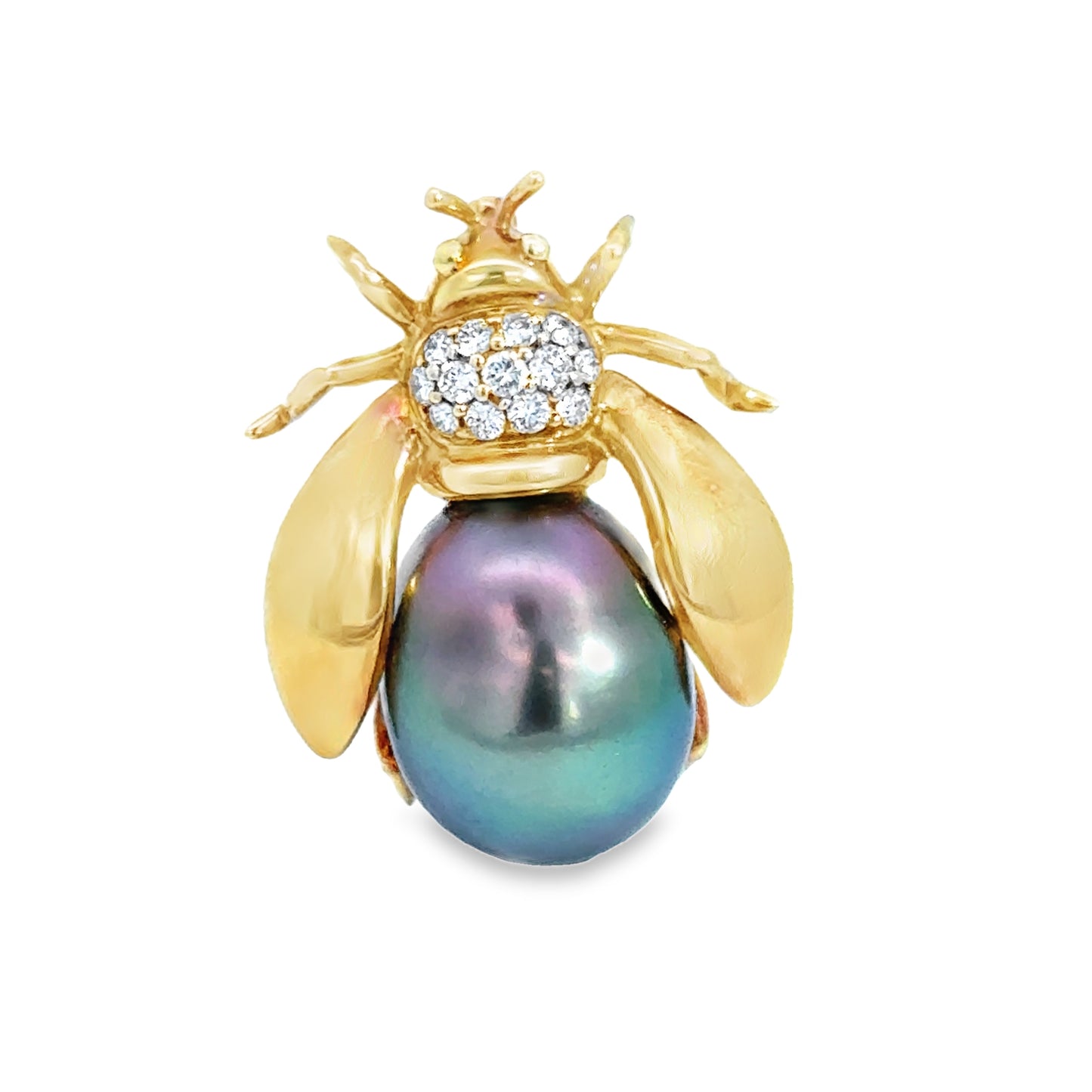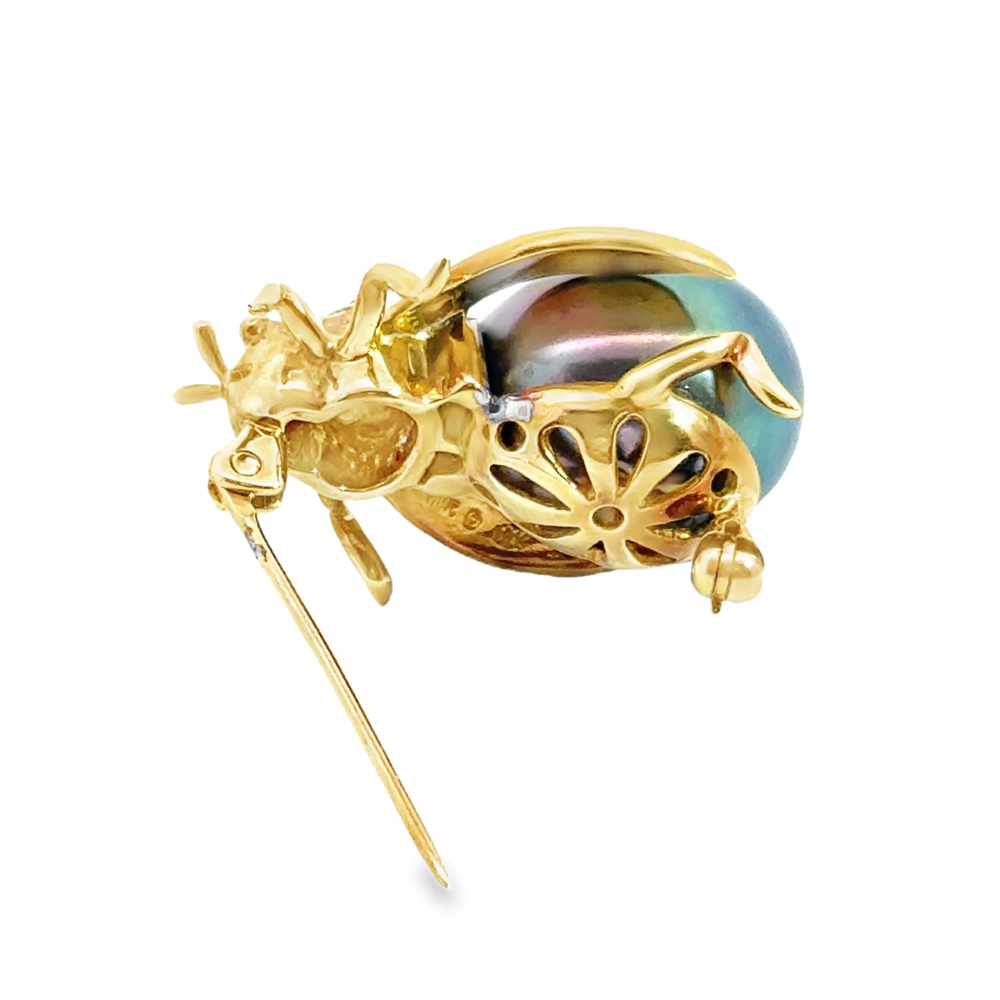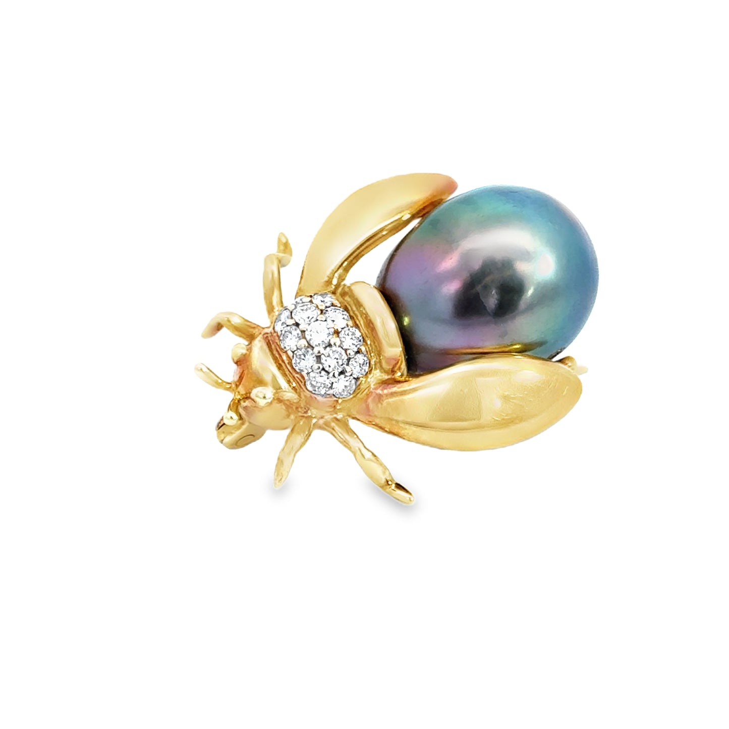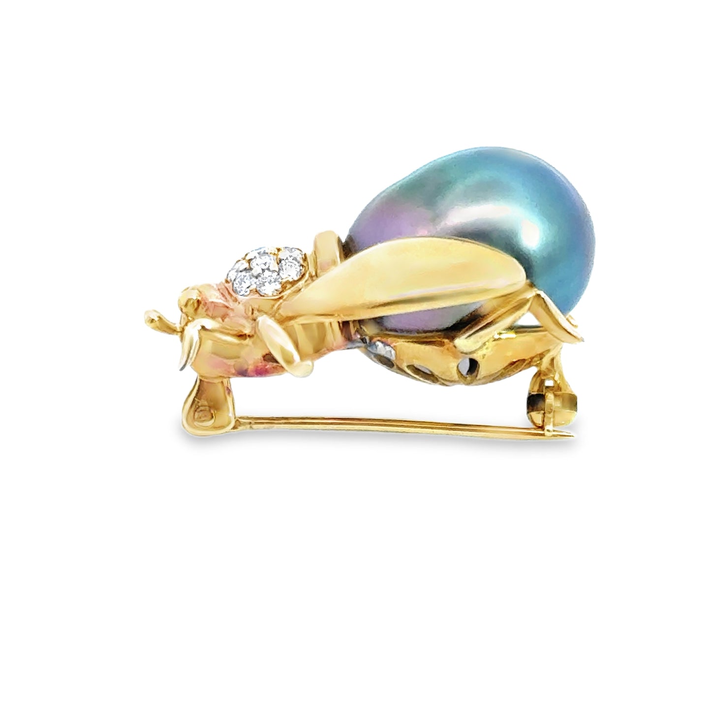18K Yellow Gold Blue Pearl & Diamond Bee Brooch