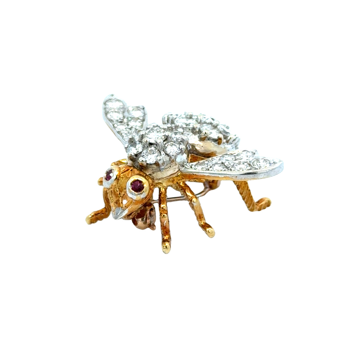 18K Yellow Gold Herbert Rosenthal Diamond & Ruby Bee Brooch
