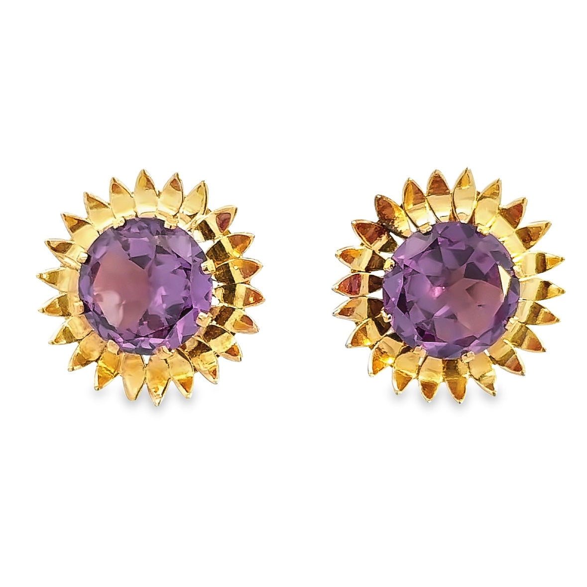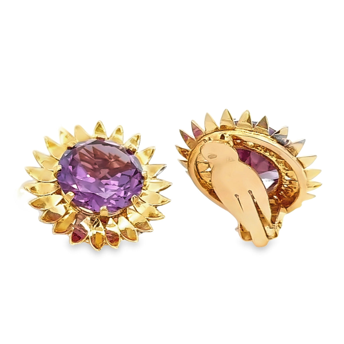 21K Yellow Gold Amethyst Sunflower Clip-On Earrings