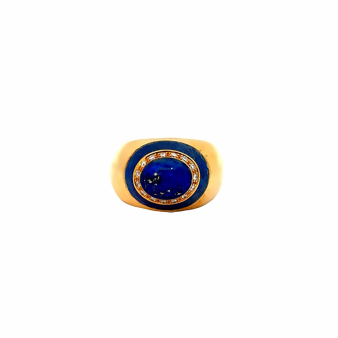 | 18K, Yellow Gold, Lapis Lazuli, 0.15 ct. Diamonds, Size 7.5 | Approx. 10.5 Grams |