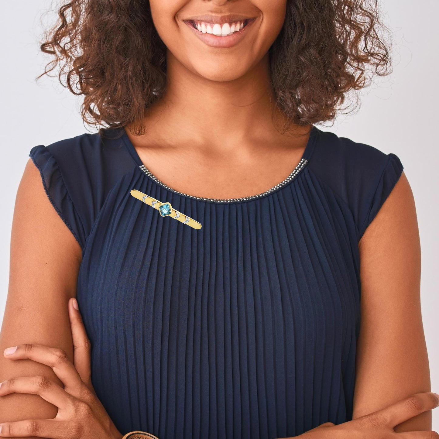 14K Yellow Gold Aquamarine & Diamond Bar Pin