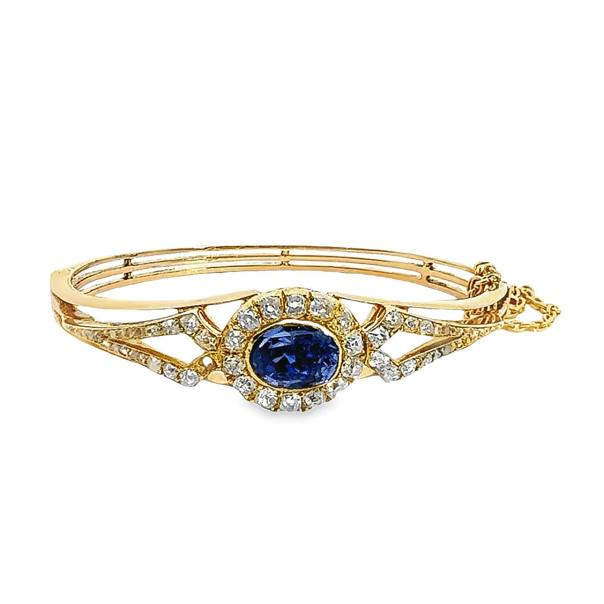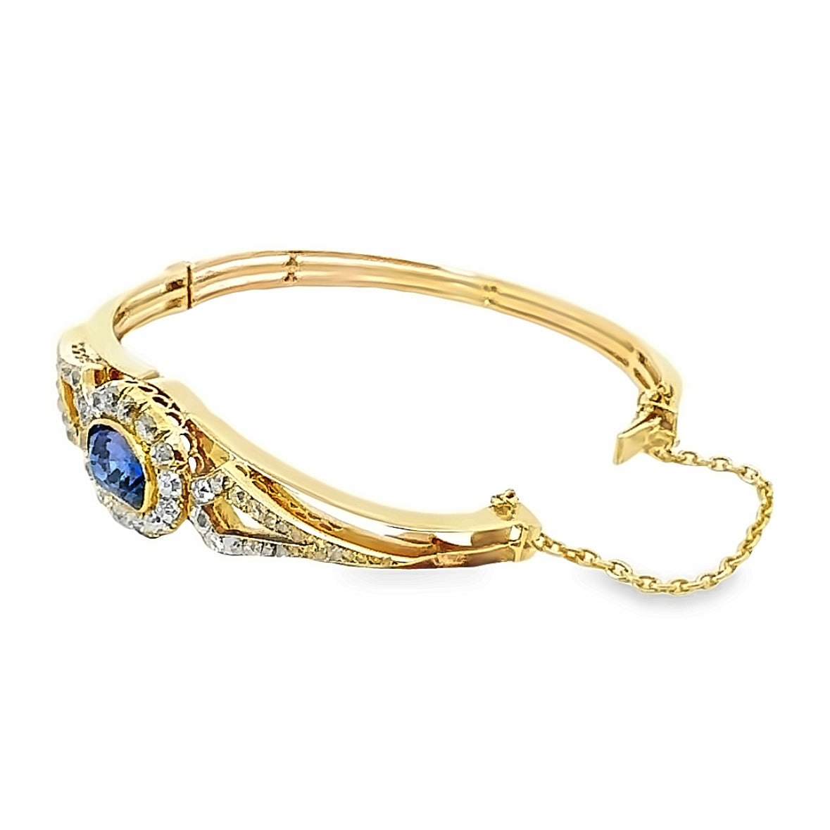 Classic Estate 14K Yellow Gold Iolite & Diamond Bangle