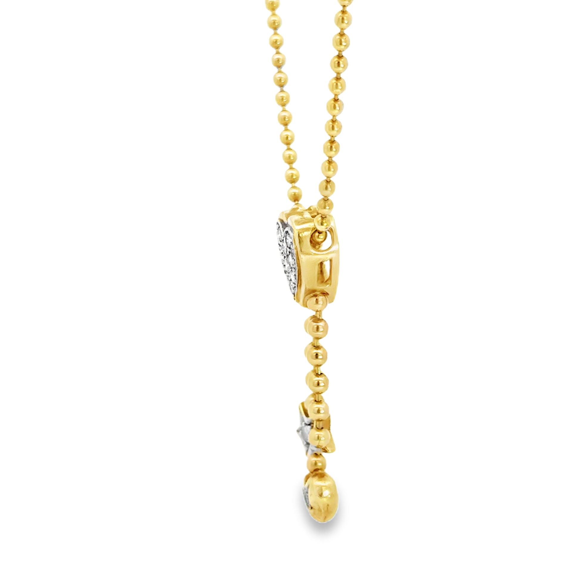 14K Yellow Gold Diamond Hearts & Stars Drop Necklace