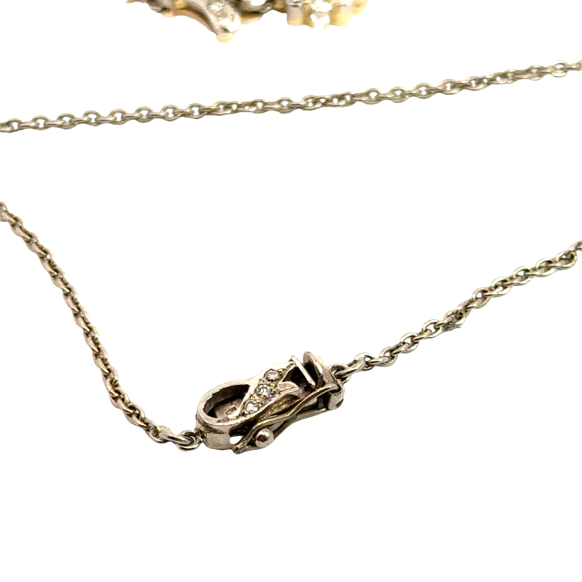 The necklace sits beautifully along the collarbone and transitions into a softly articulated drop, giving it graceful movement when worn. A refined statement piece — feminine, timeless, and elegant.