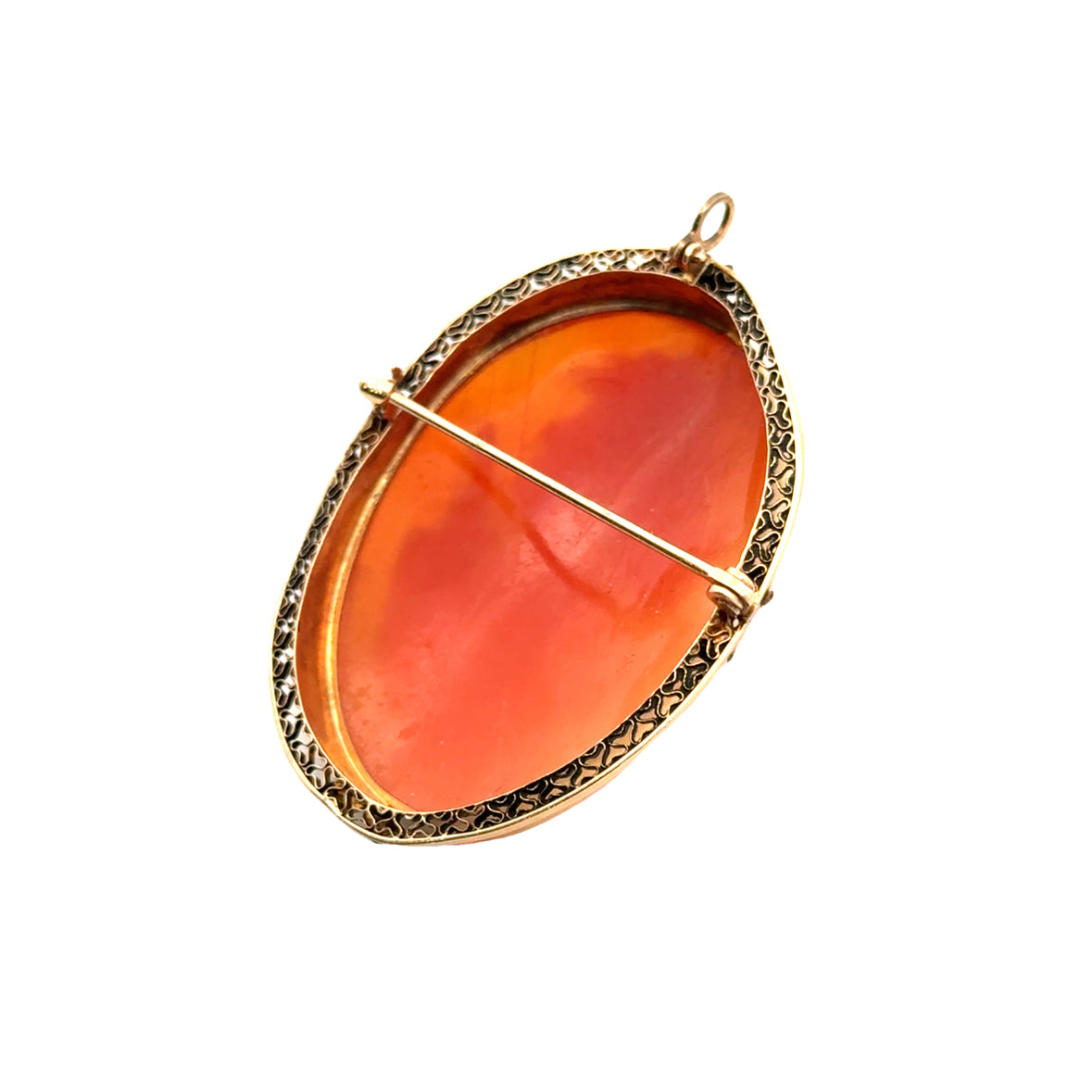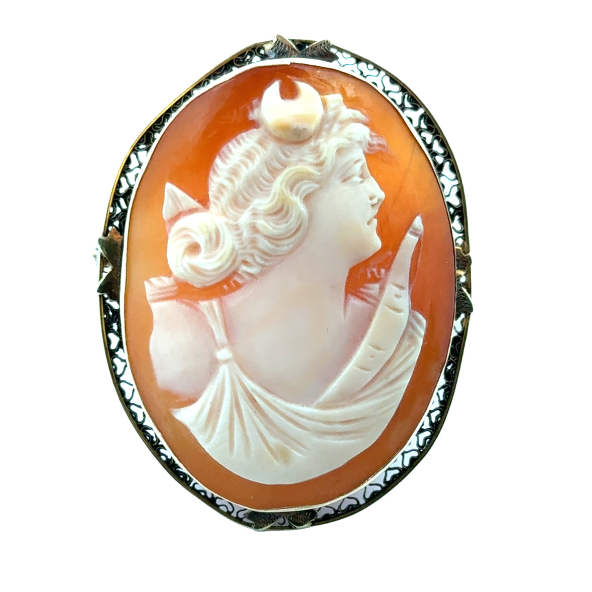 14K Yellow Gold Filigree Greek goddess Diana Cameo Brooch/Pendant