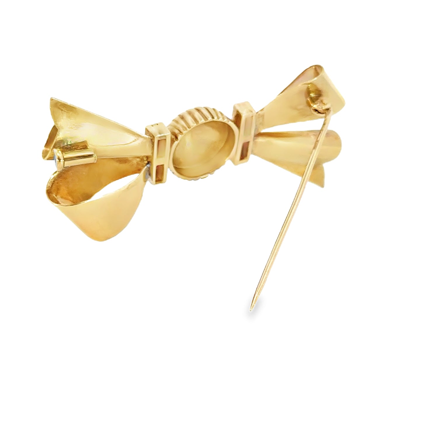 Retro 18K Rose Gold & Ruby Bow Brooch