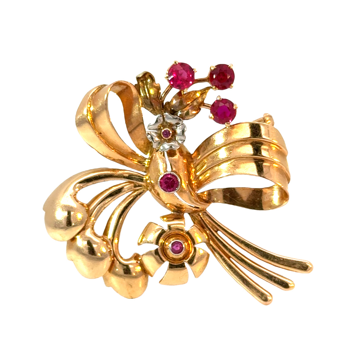 18K Rose Gold & Ruby Floral Bouquet Brooch