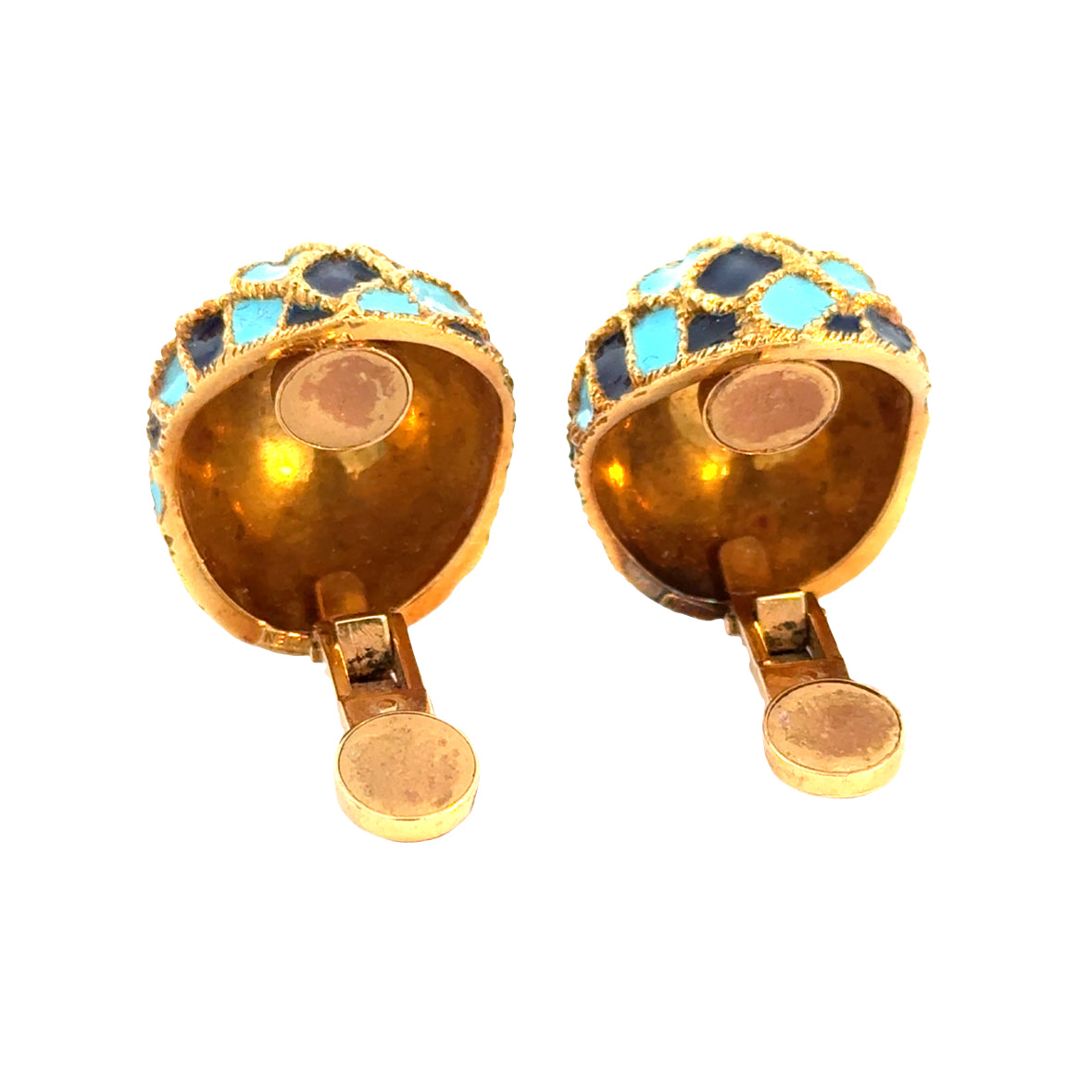 1950’s 18K Gold Turquoise & Navy Enamel Domed Clip-On Earrings
