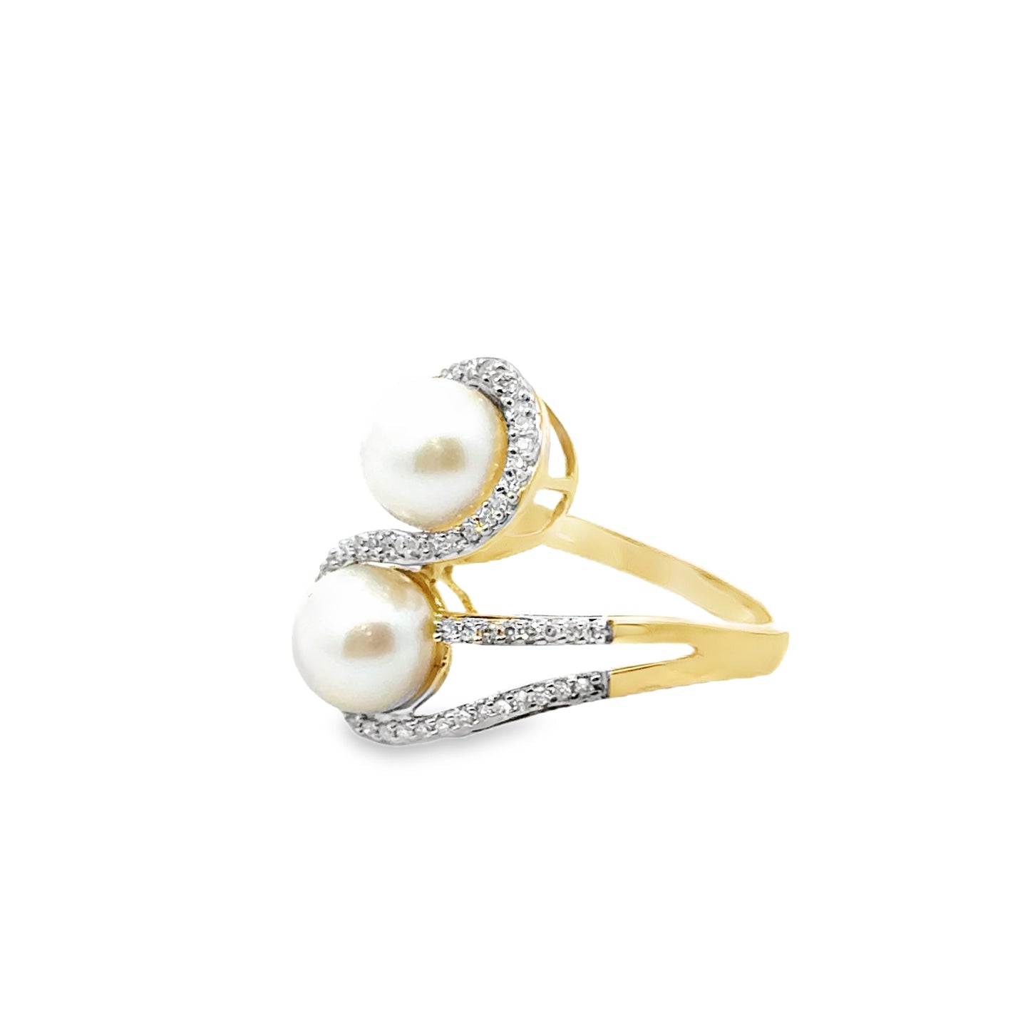 14K Yellow Gold Pearl & Diamond Swirl Ring