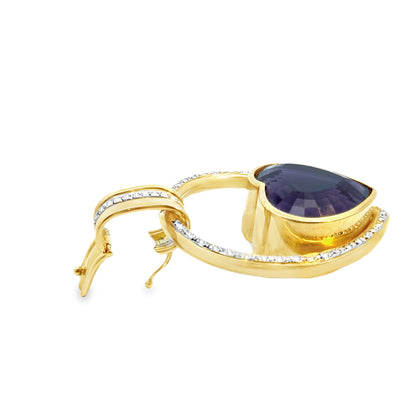 18K Yellow Gold, Enhancer Pendant, Diamonds approx.1.00ct., Amethyst, approx.2.5” long including bale and 1.5”wide, Chain not included |
