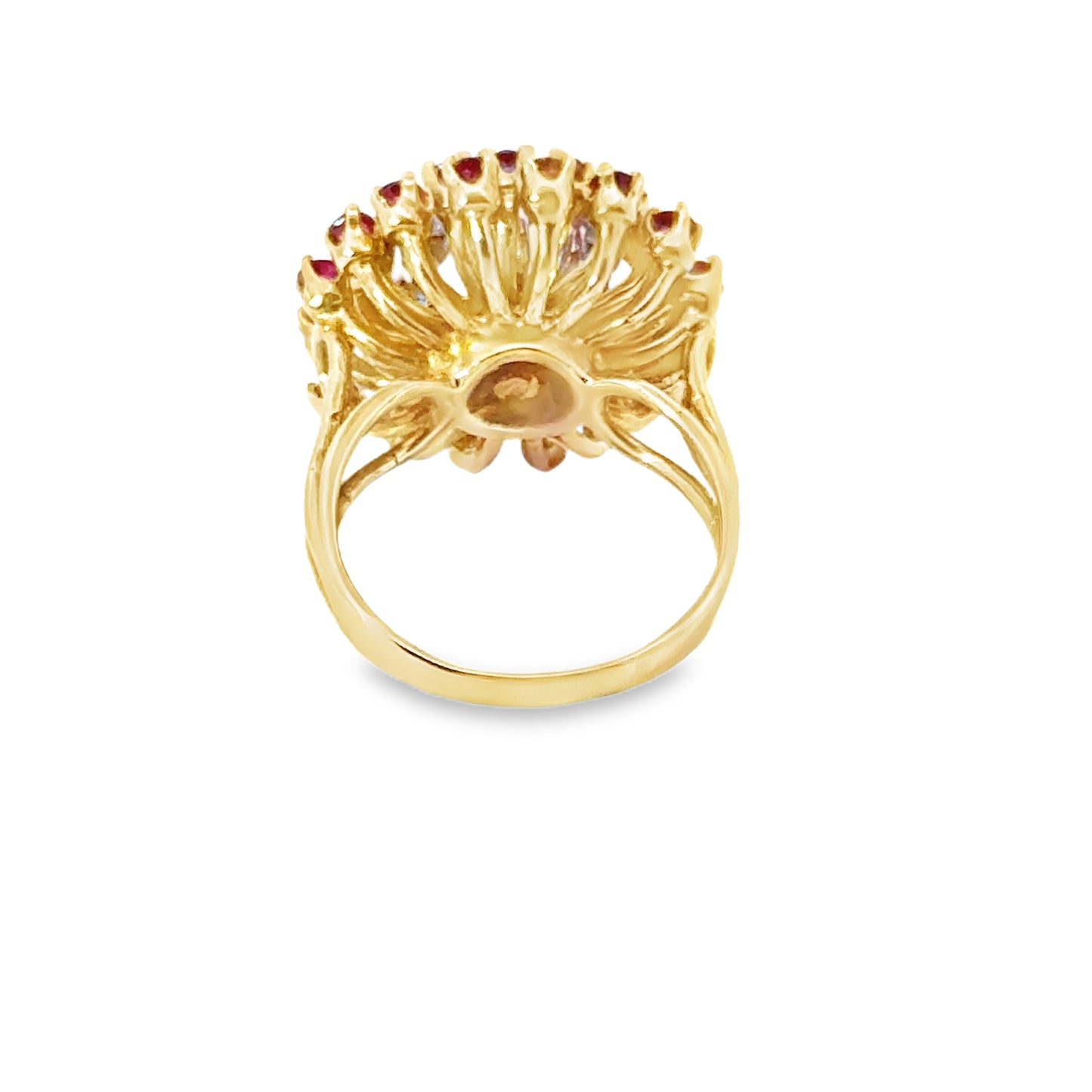 14K Yellow Gold Sunburst Ruby & Diamond Ring