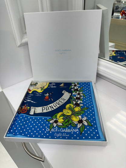 Dolce & Gabbana Light Blue “Panarea” Cotton Scarf – 19x19”