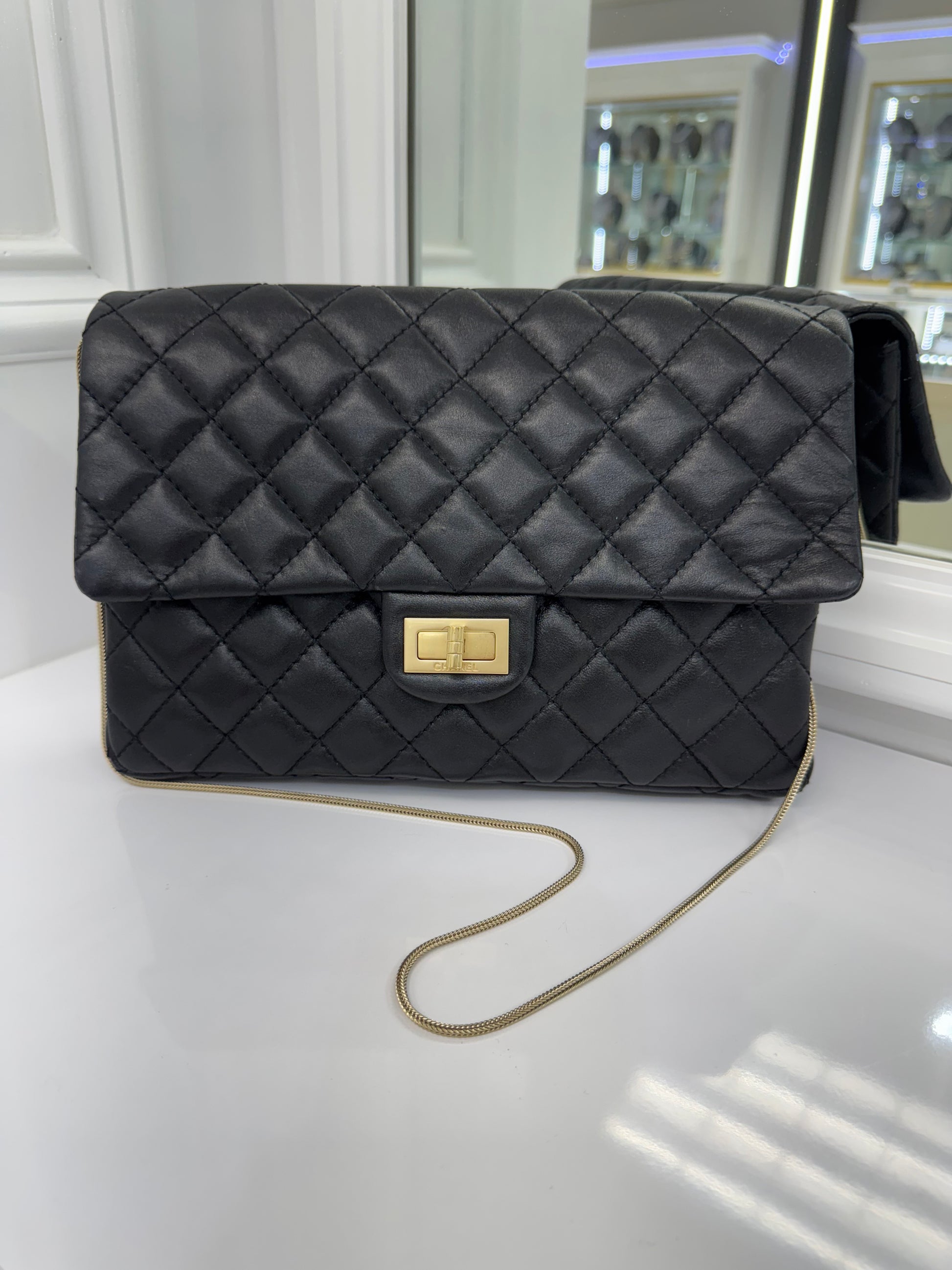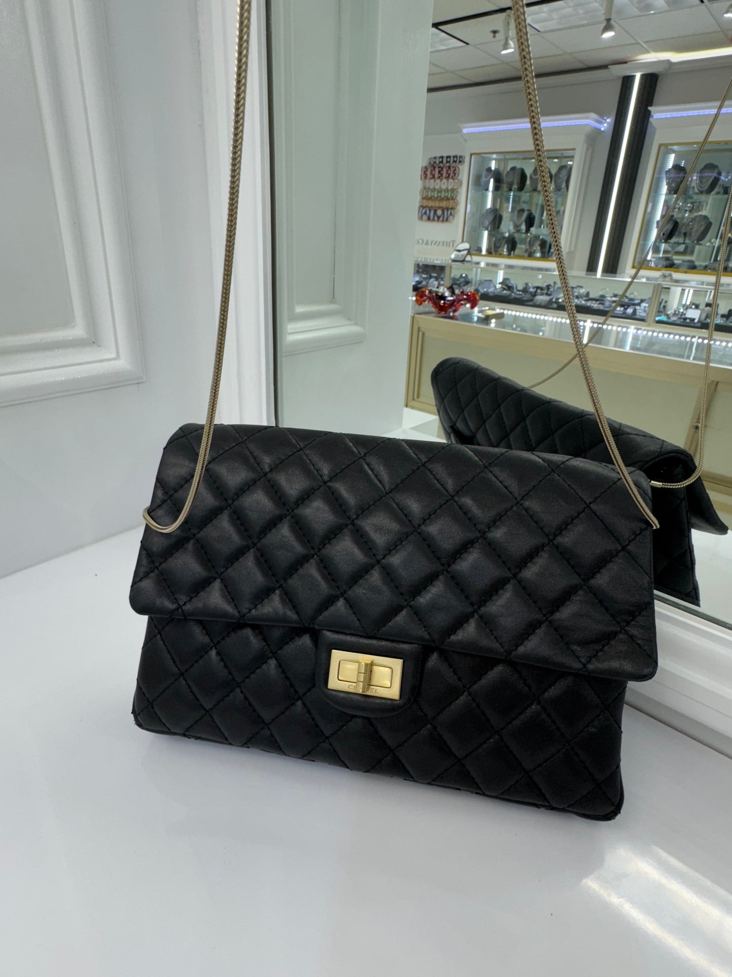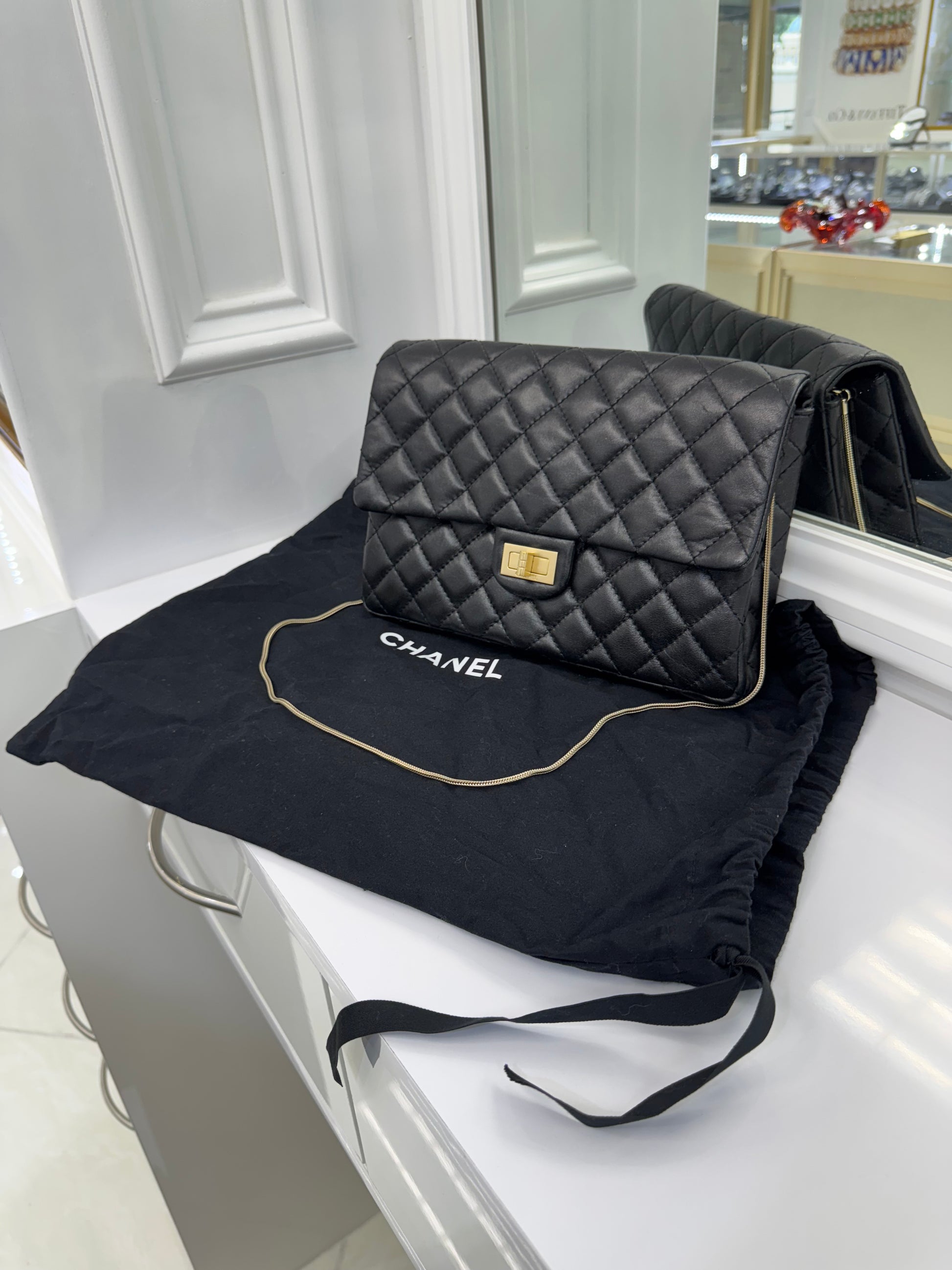 Authentic Chanel Reissue 2.55 Quilted Lambskin Leather Flap Bag – Black with Gold Hardware