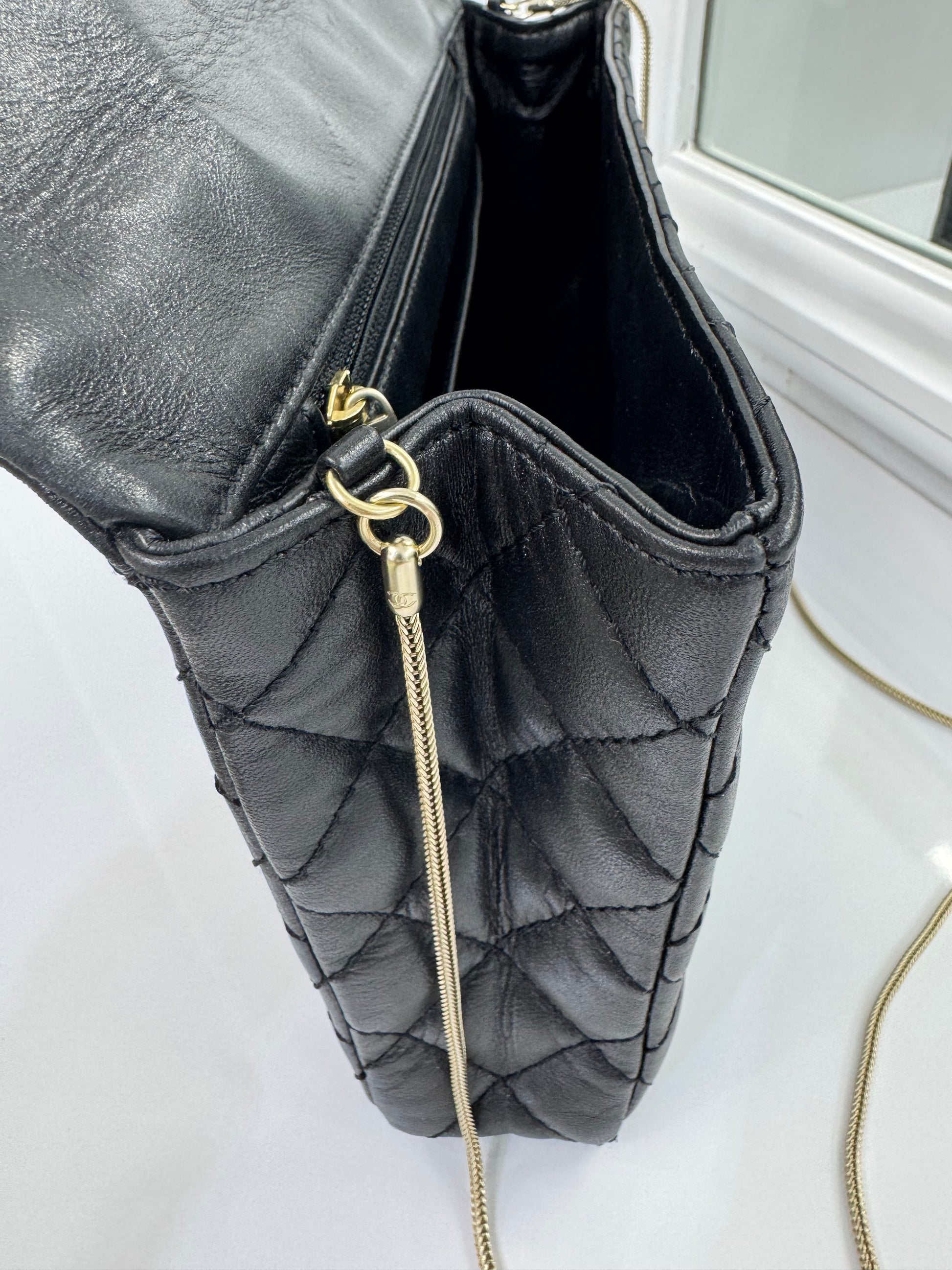 The bag is in gently pre-owned condition with minor signs of use consistent with soft lambskin leather. The corners and edges are in good shape, the structure remains intact, and the gold hardware shows only light surface wear. Comes with the original Chanel dust bag.