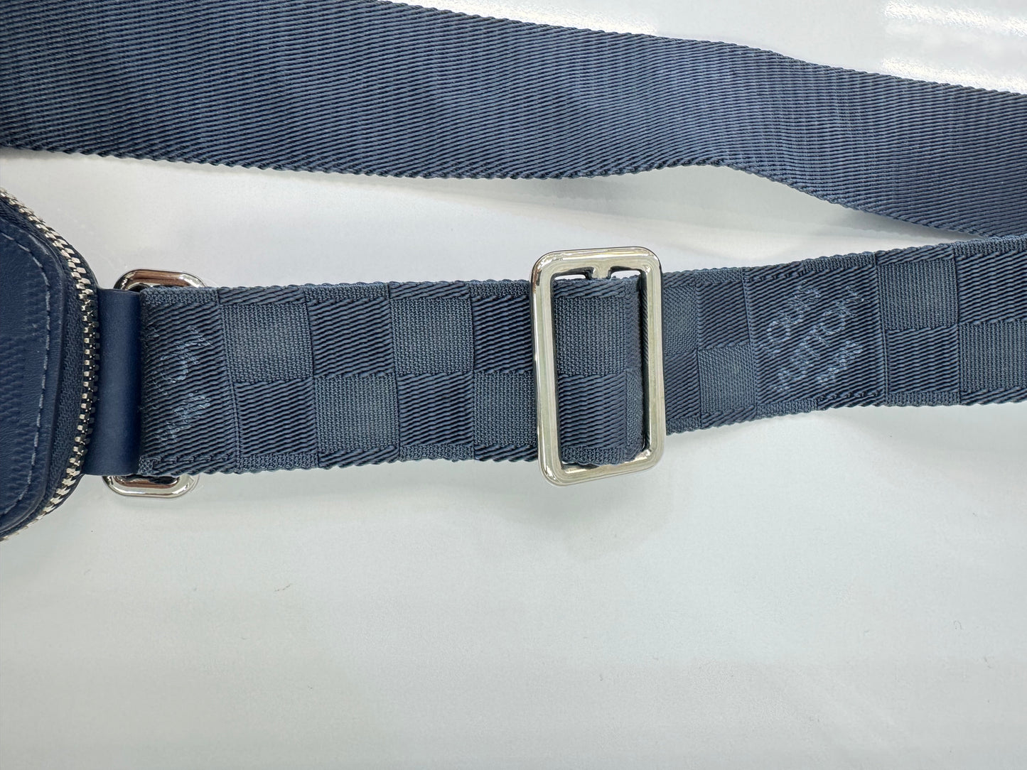 - Strap: Adjustable monogrammed strap with check pattern and Louis Vuitton branding
