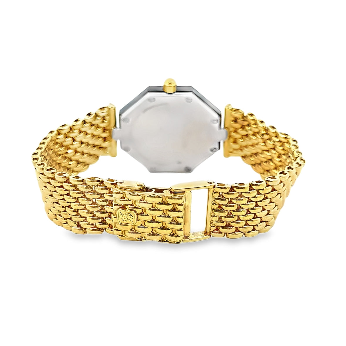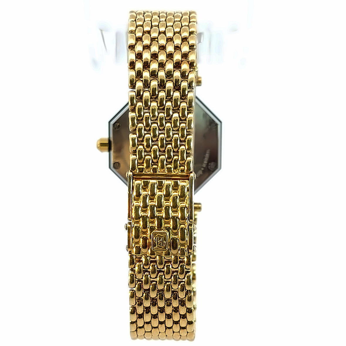 Ladies Watch Dial: diamond accent, black dial or navy depending on angle and light source, date on dial, octagon shape