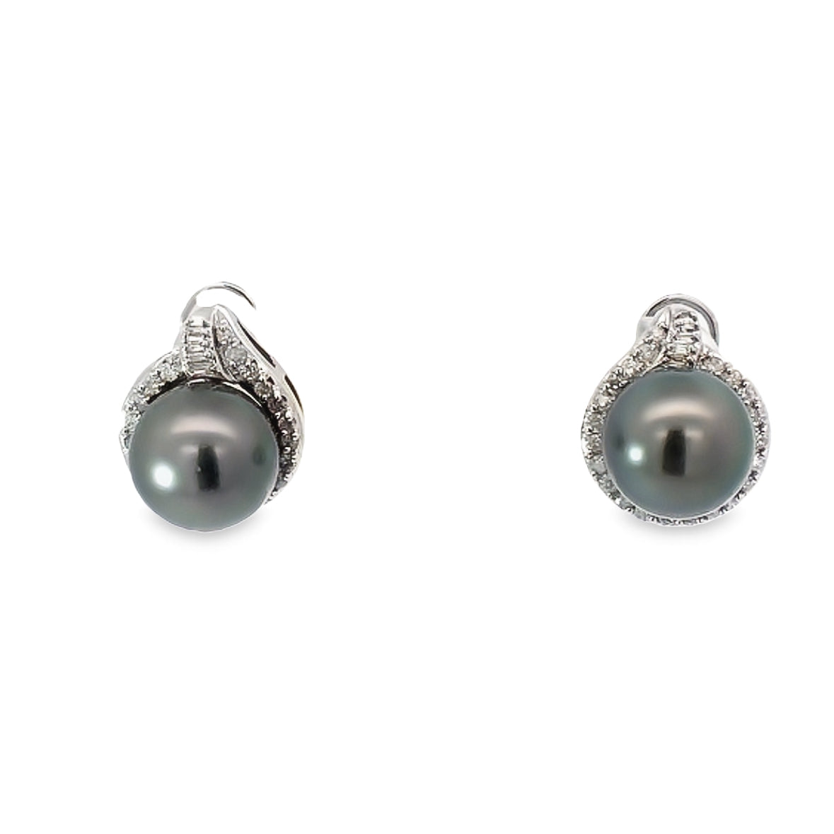 14K/WG, Tahitian Black Cultured Pearl, 3/4 ct. Diamonds, French Clip |