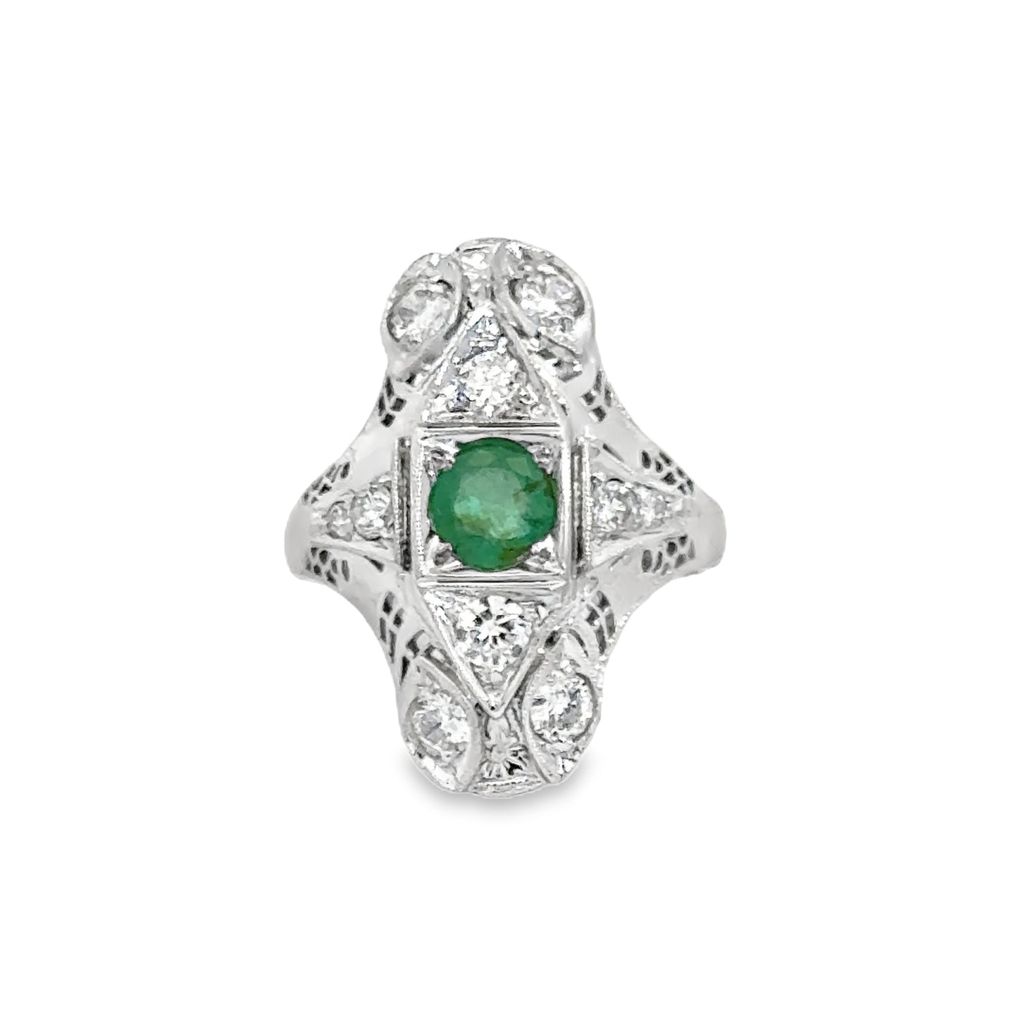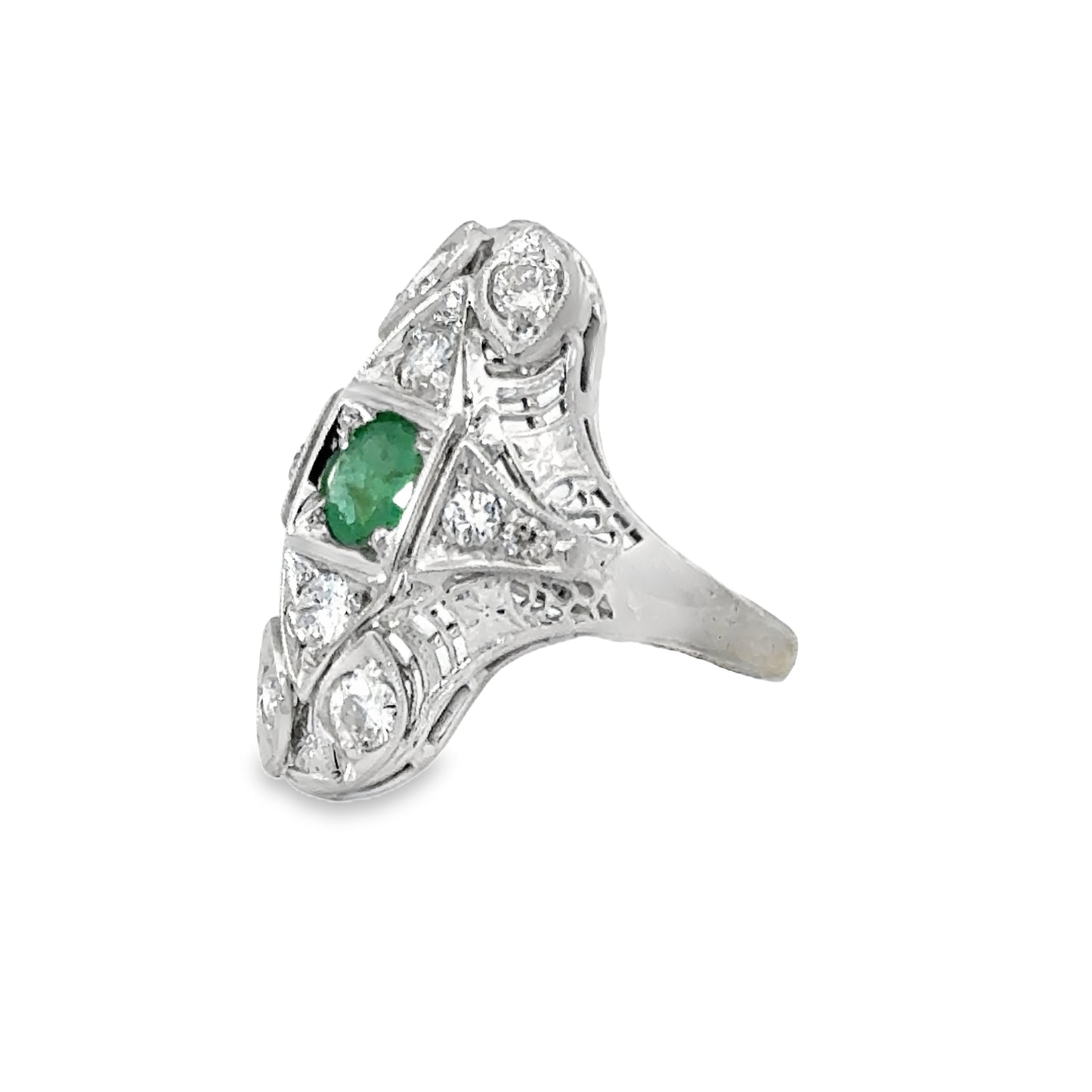 | 18K White Gold, Emerald Approx.0.50ct., Diamonds Approx.0.65ct., Length 22mm, Antique, Size 3.5 |