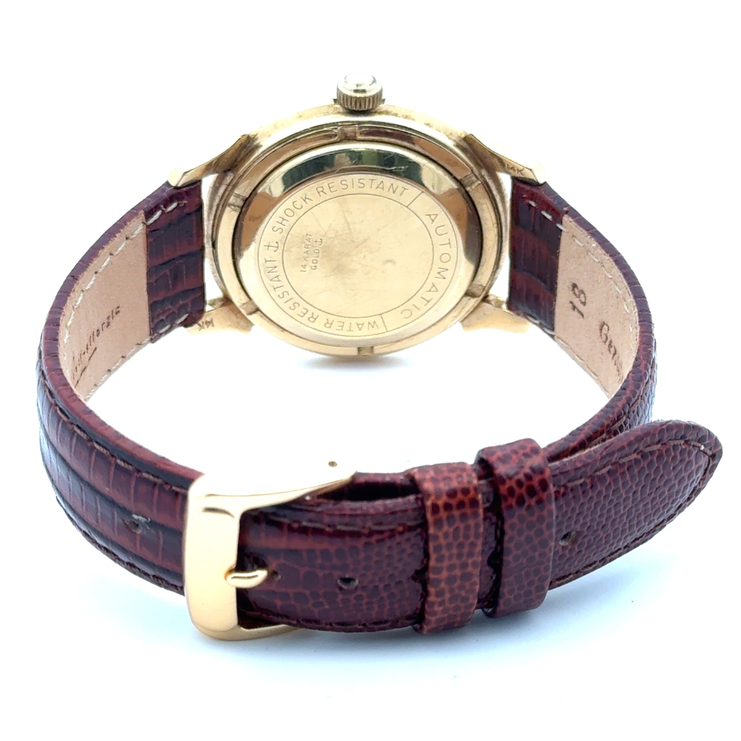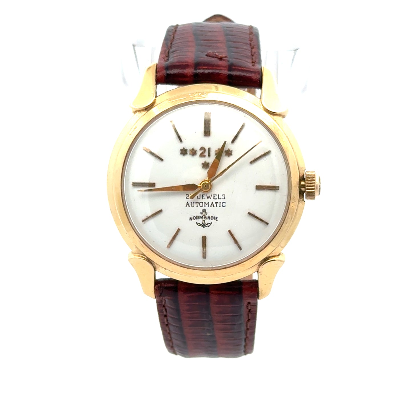 | Normandie, 14K Yellow Gold, 28 Jewels, Brown Leather Strap, 34mm Case, Water Resistant, Shock Resistant, Automatic Hand Winding |