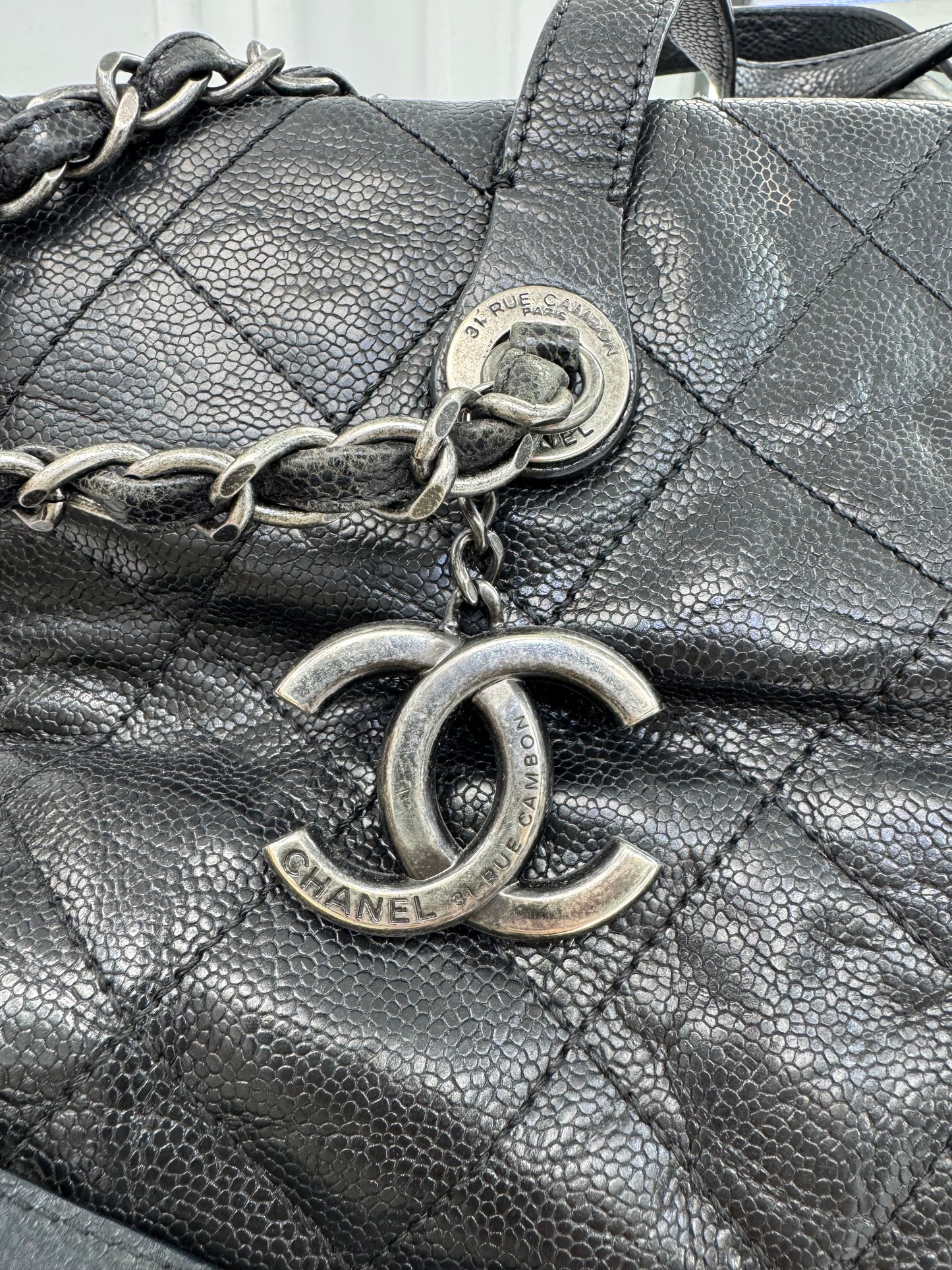 - Features: Large CC charm engraved with “CHANEL 31 RUE CAMBON PARIS”