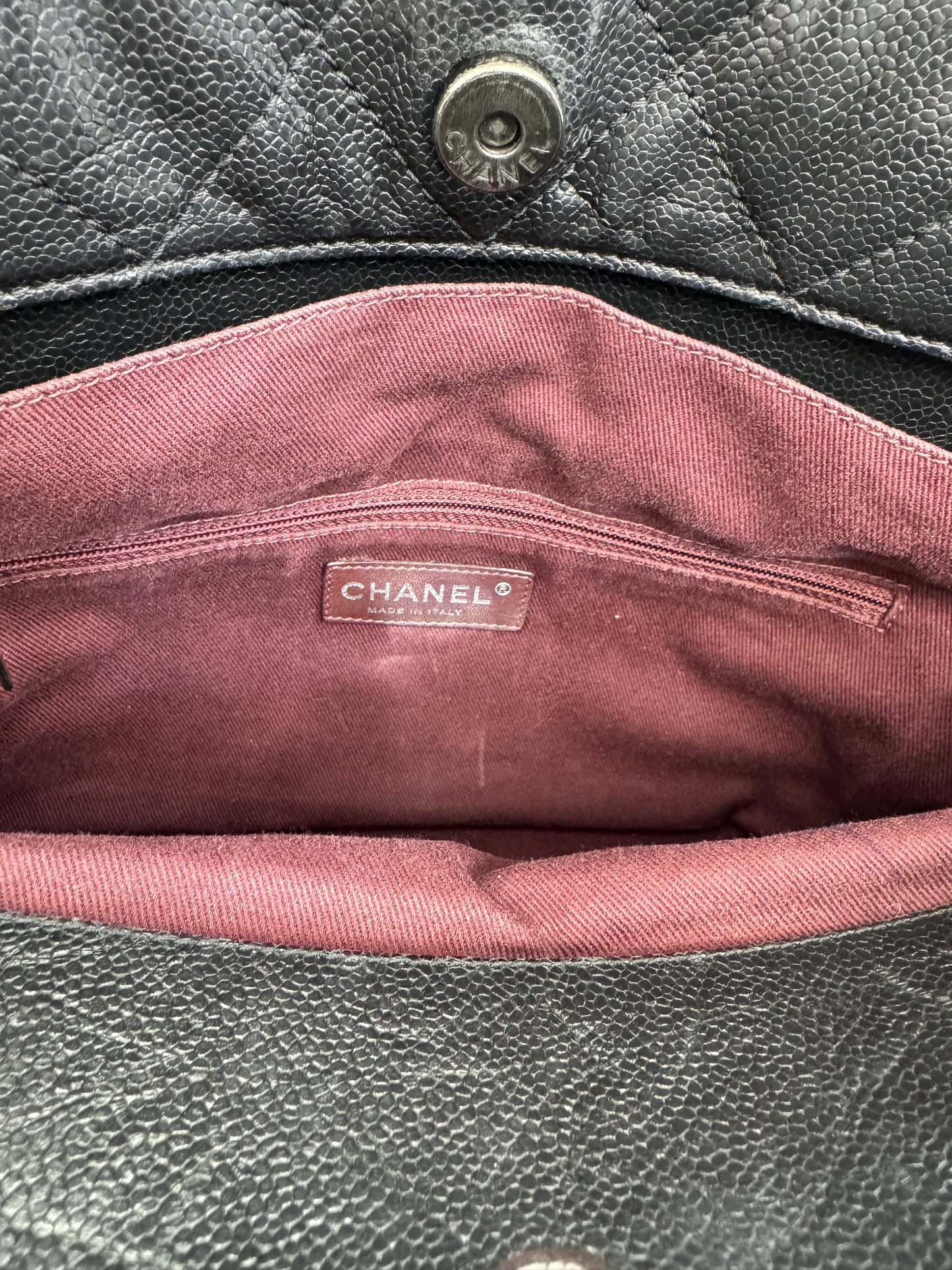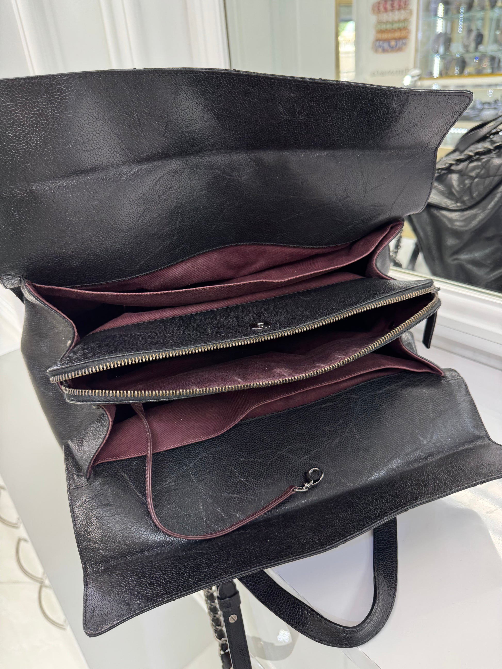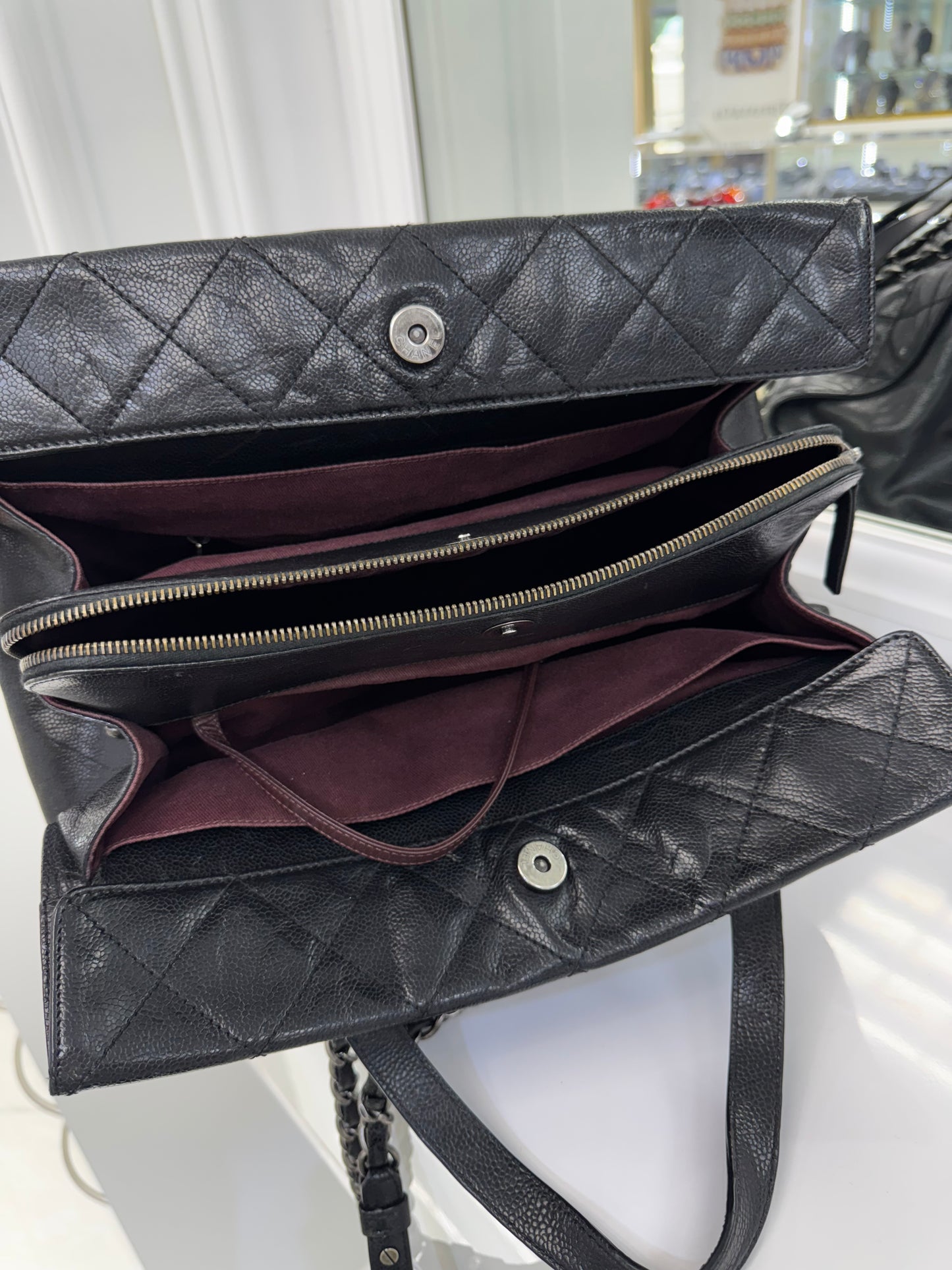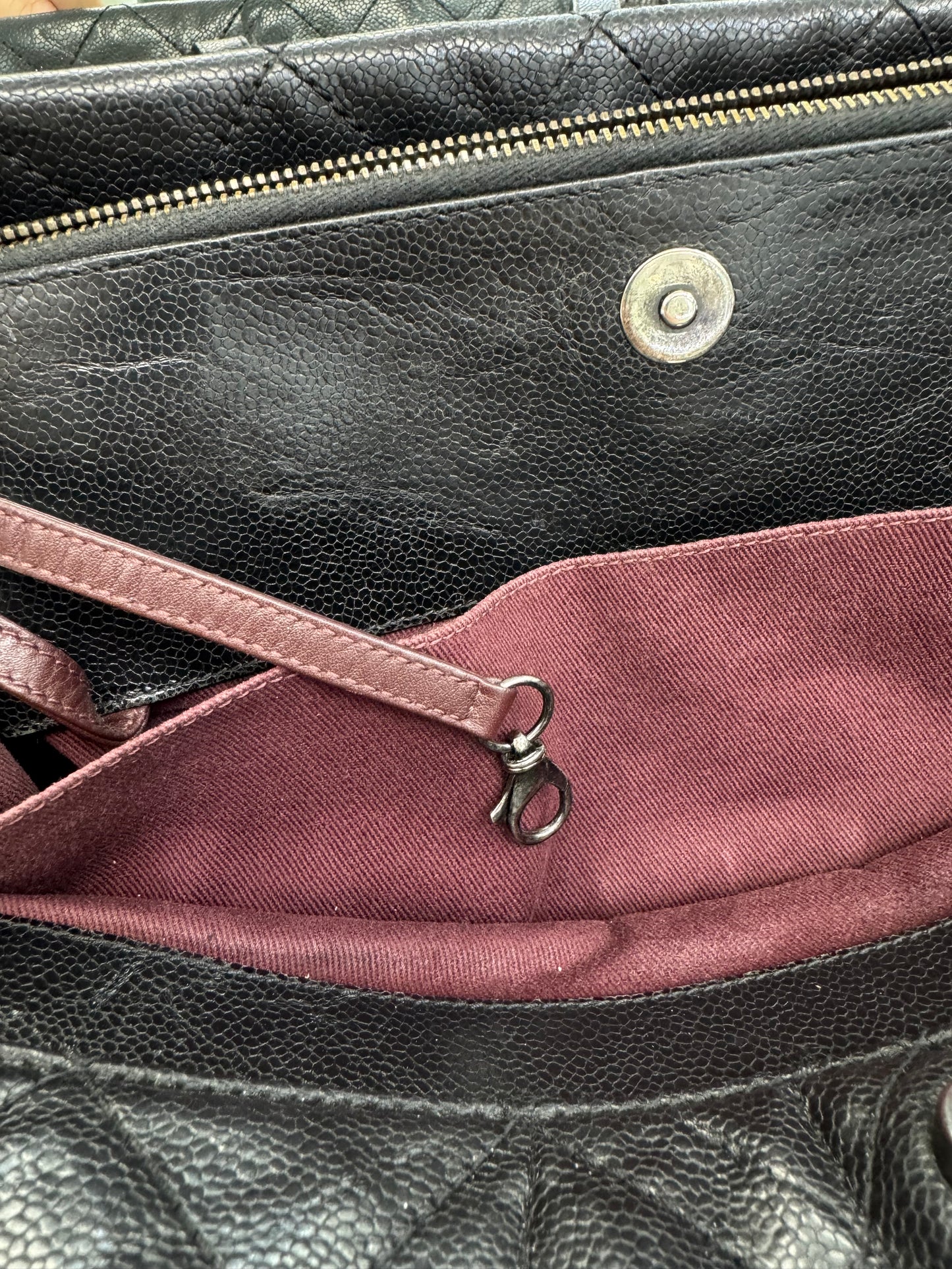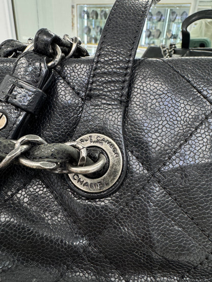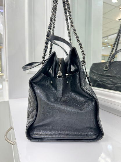 Chanel Large Quilted Caviar Leather Tote with Chain & Top Handles – Black / Burgundy Interior