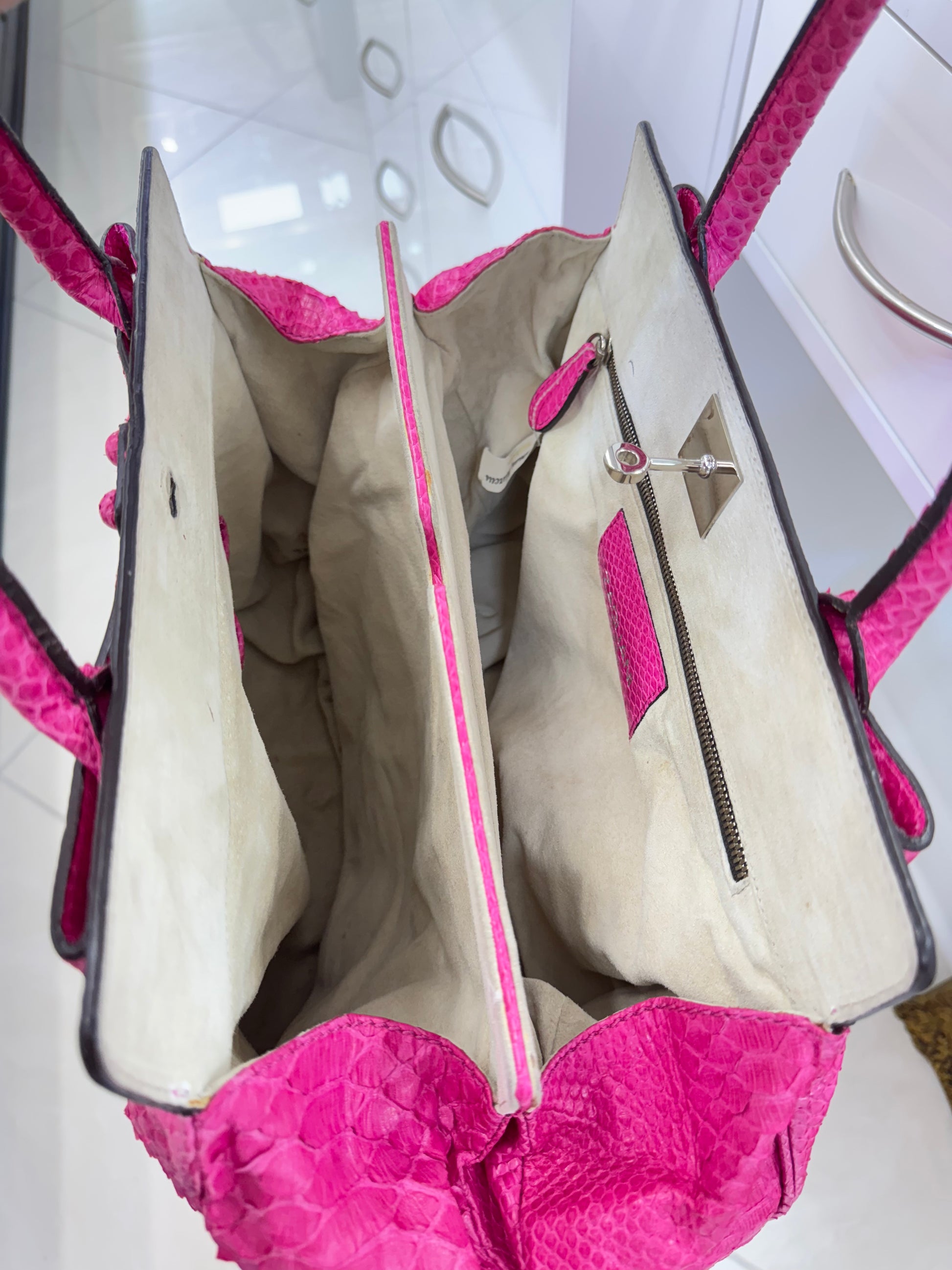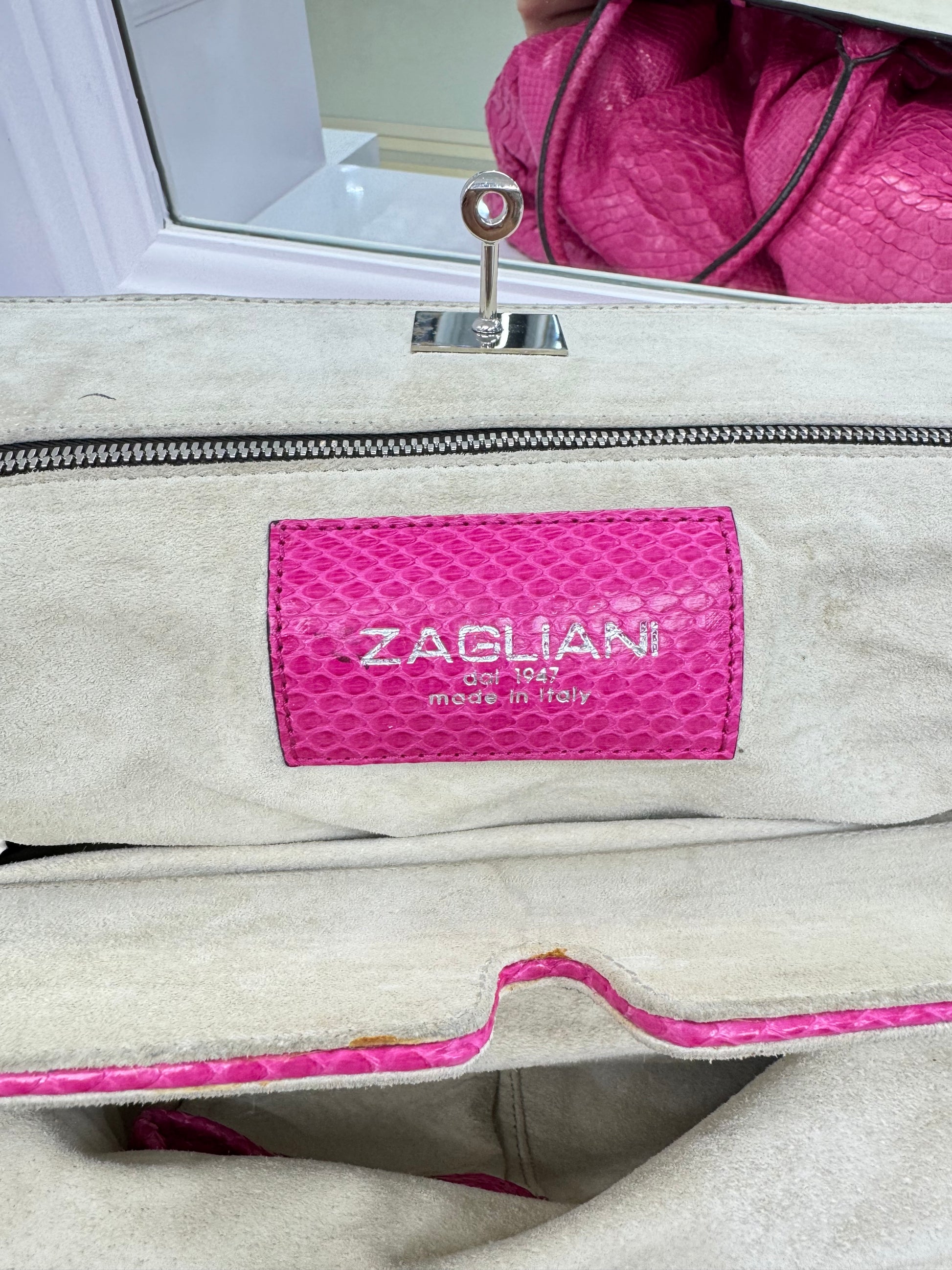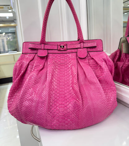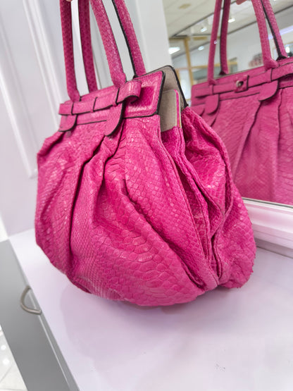 Zagliani Fuchsia Python Skin Handbag – Luxury Italian Statement Bag