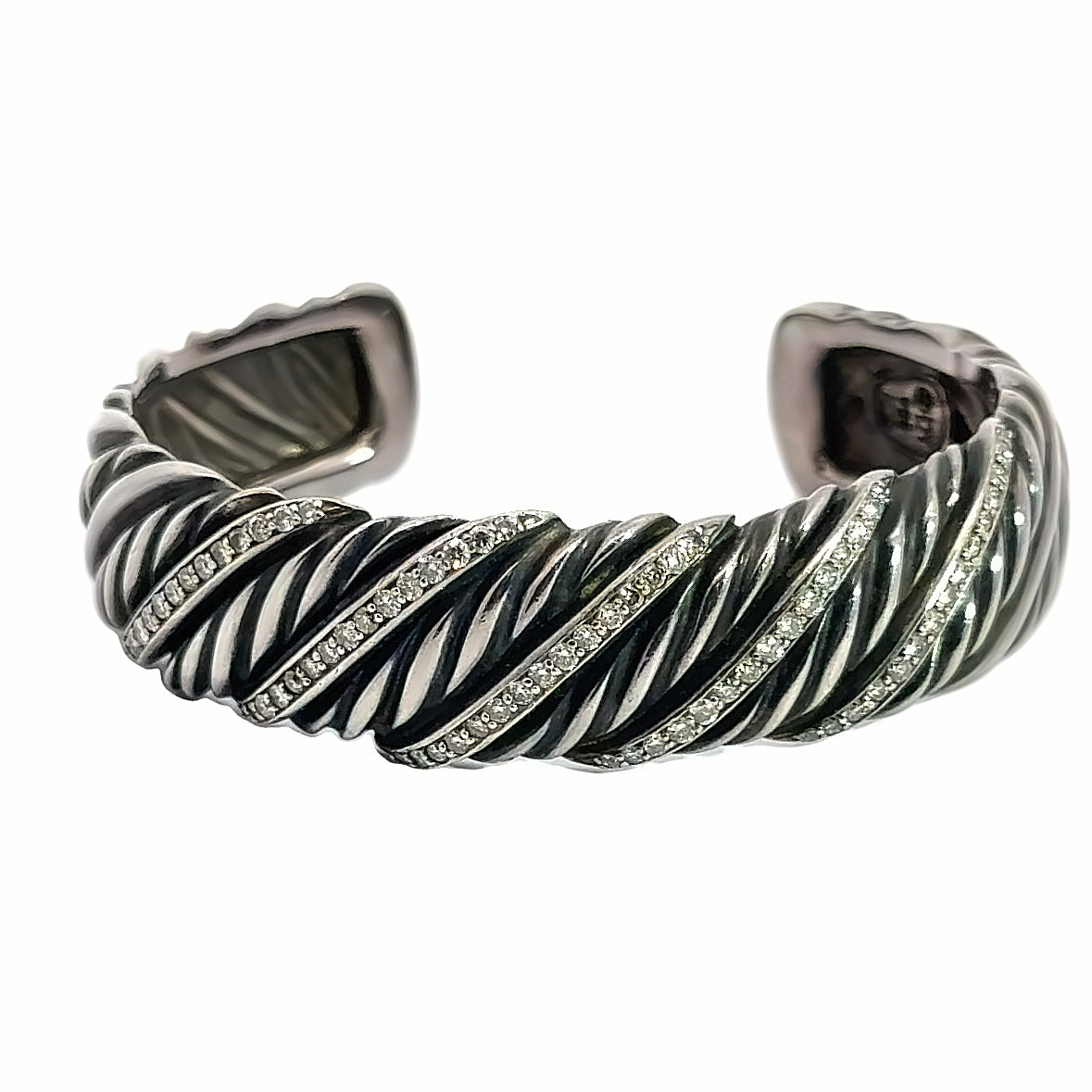 | David Yurman, 925 Silver, Sculpted Cable Cuff Bangle, Diamonds Approx.2.25 ct., Length:6.5”, Width: Approx.15.46mm |