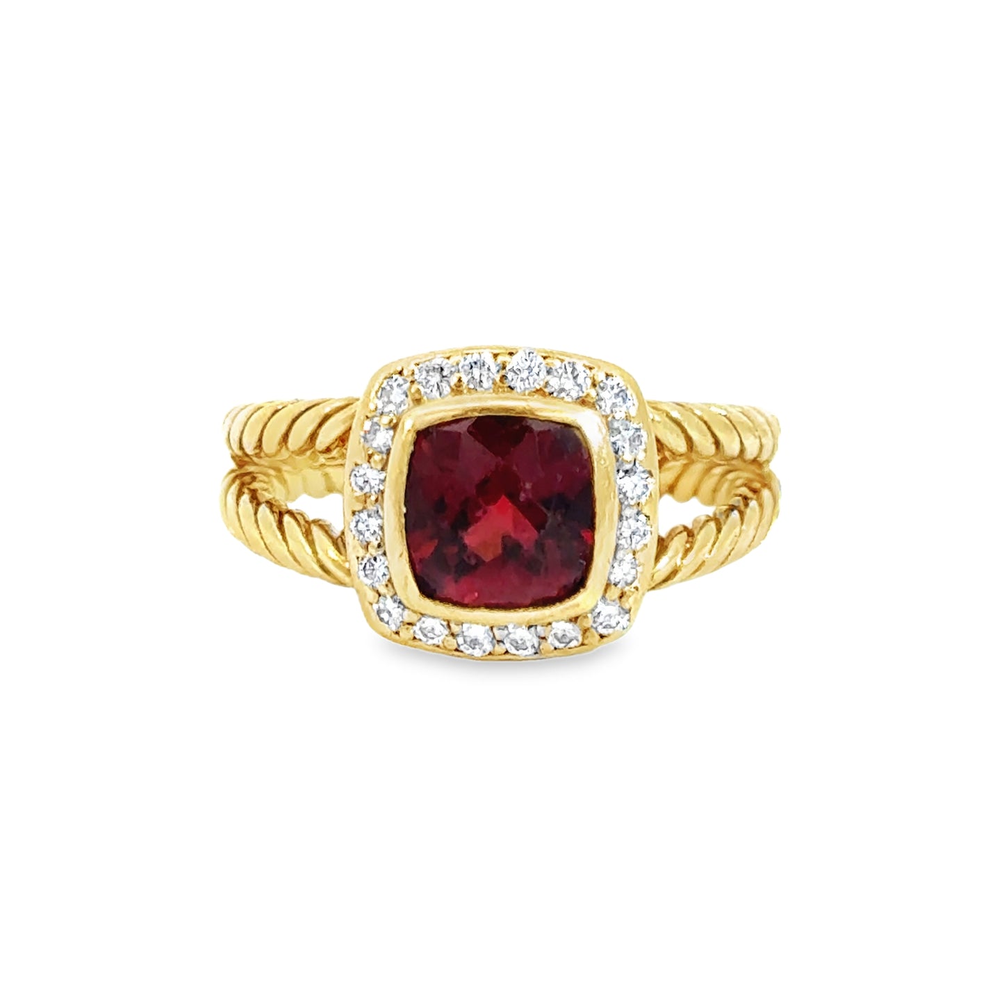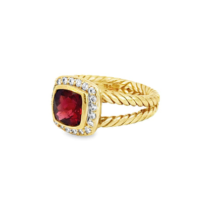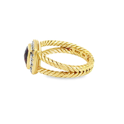 David Yurman 18K Yellow Gold Garnet & Diamond Ring