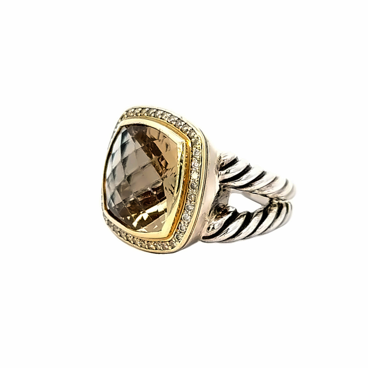 David Yurman 18K/Silver Albion Citrine & Diamond Cable Ring
