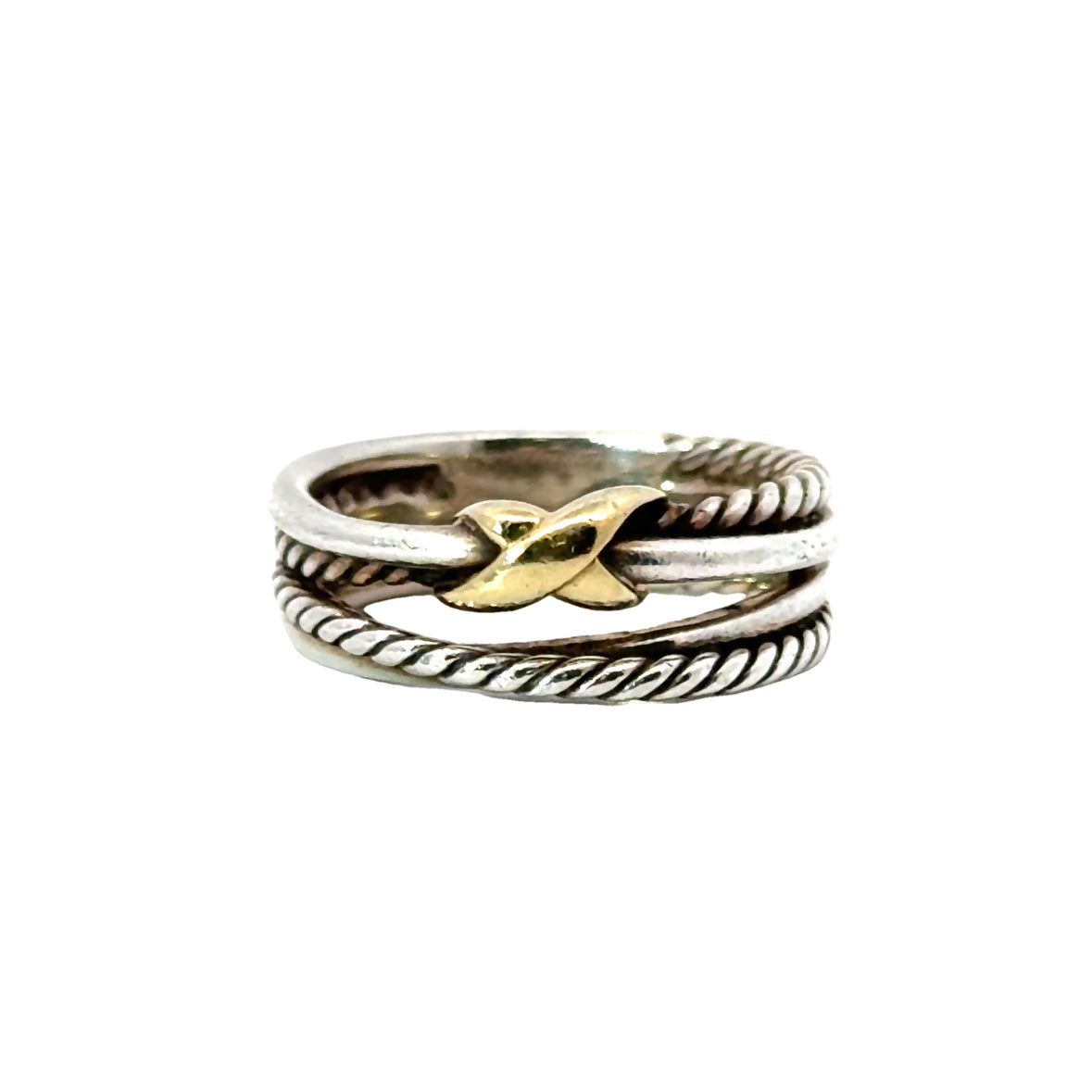 Sterling Silver (925), 18K Yellow Gold (750), Twisting Cable, X Motif, Size 6 |