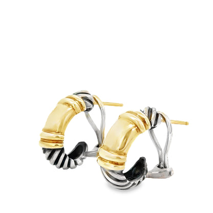 Sterling Silver and 14K Yellow Gold, Half-Hoops, French-Clip |
