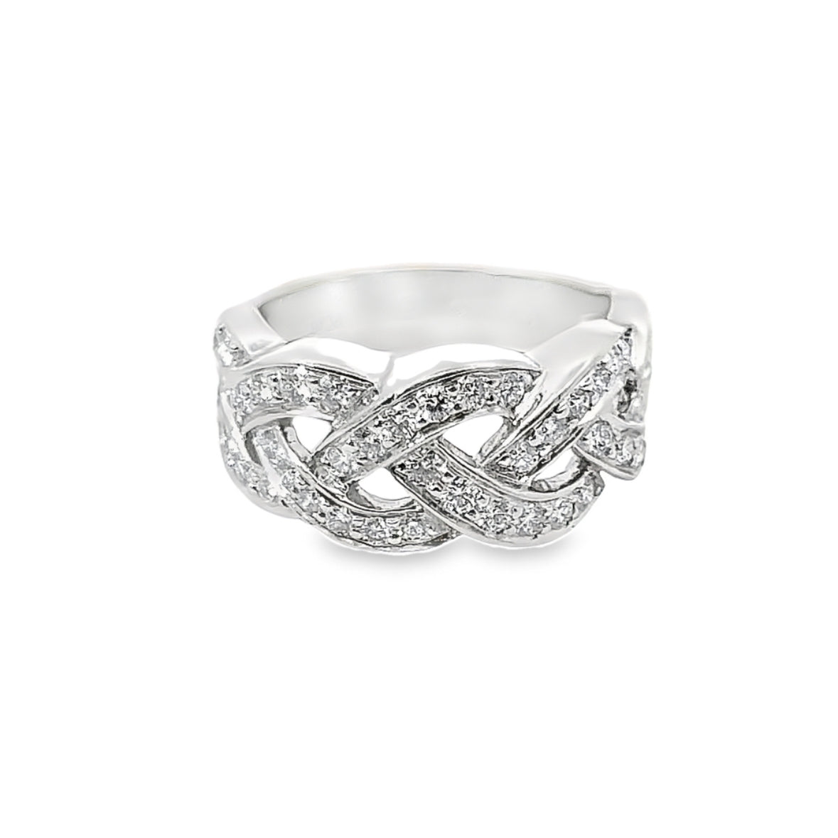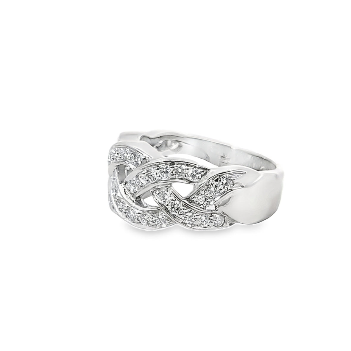 If you are in search of a stunning ring that exudes elegance, we recommend this Platinum Woven Diamond Ring. It is the perfect accessory if you desire to make a statement . The intricate woven design and beautiful diamonds make this ring visually appealing and sure to capture the attention of anyone who sees it. Crafted in platinum, VS/G diamond color and quality, and approximately 1.30ct. of round-cut diamonds. This ring is timeless and has a sophisticated appearance.