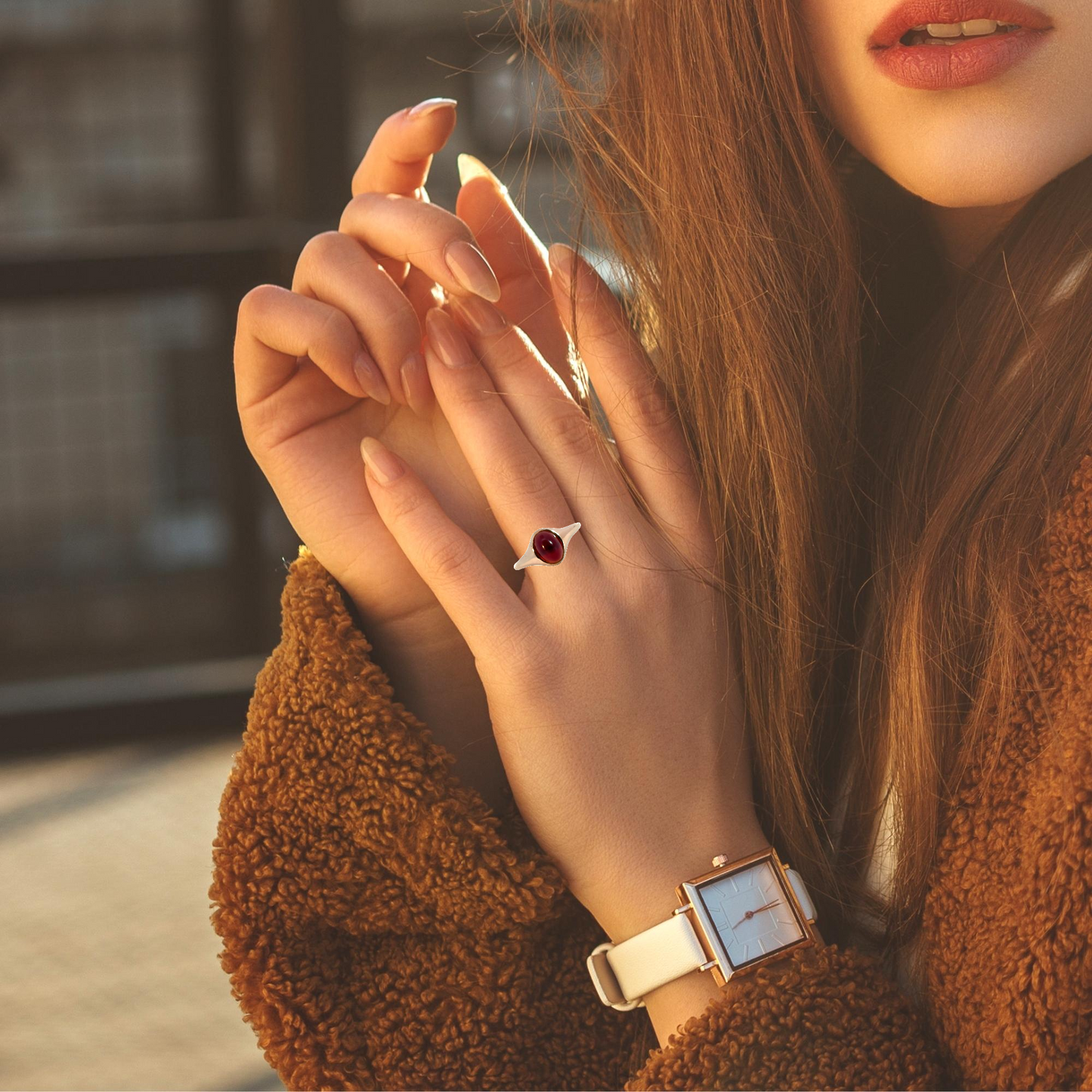 14K Yellow Gold, Oval-Cut Garnet, Size 7 |