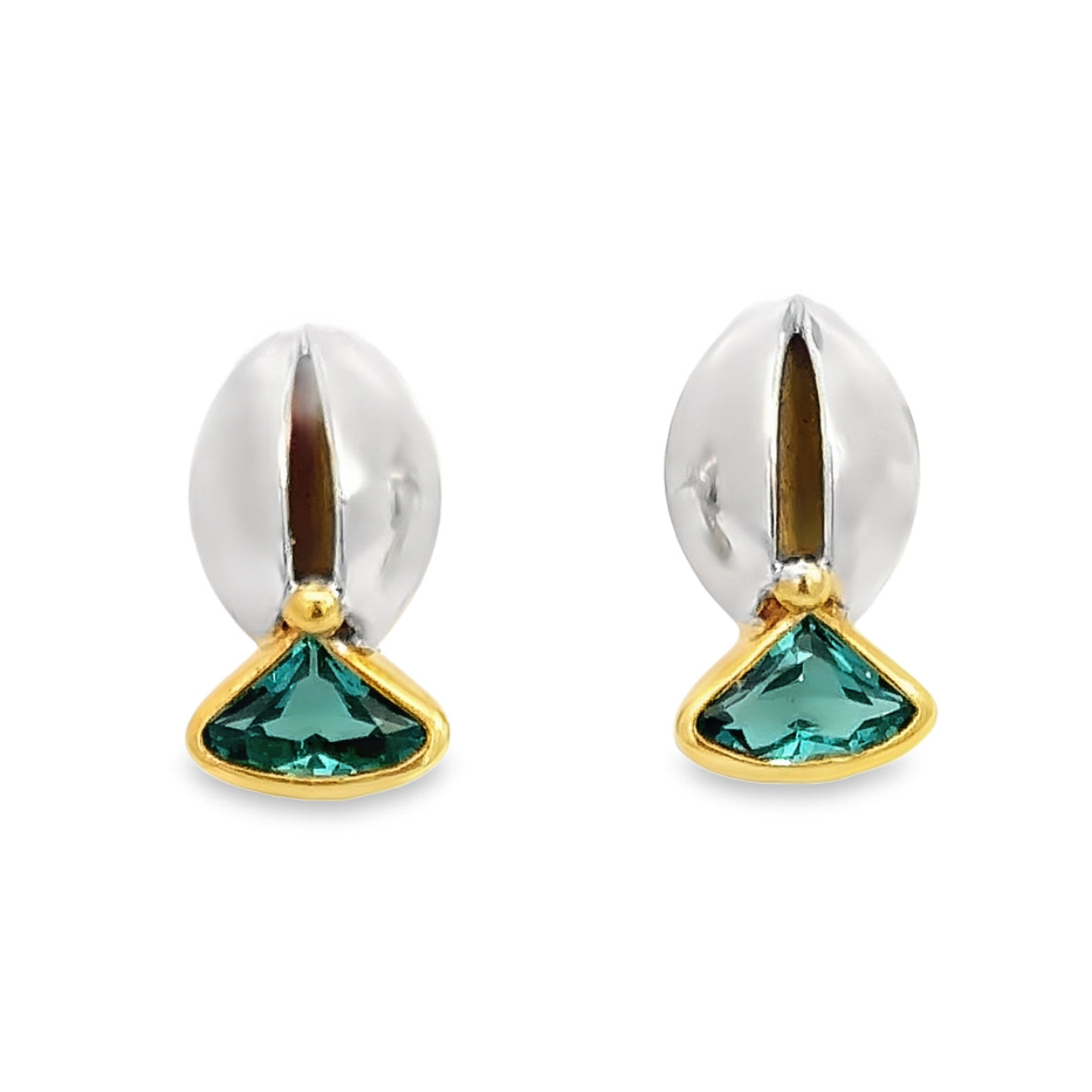 | 18K White & Yellow Gold, Blue-Green Topaz, Push Backs |